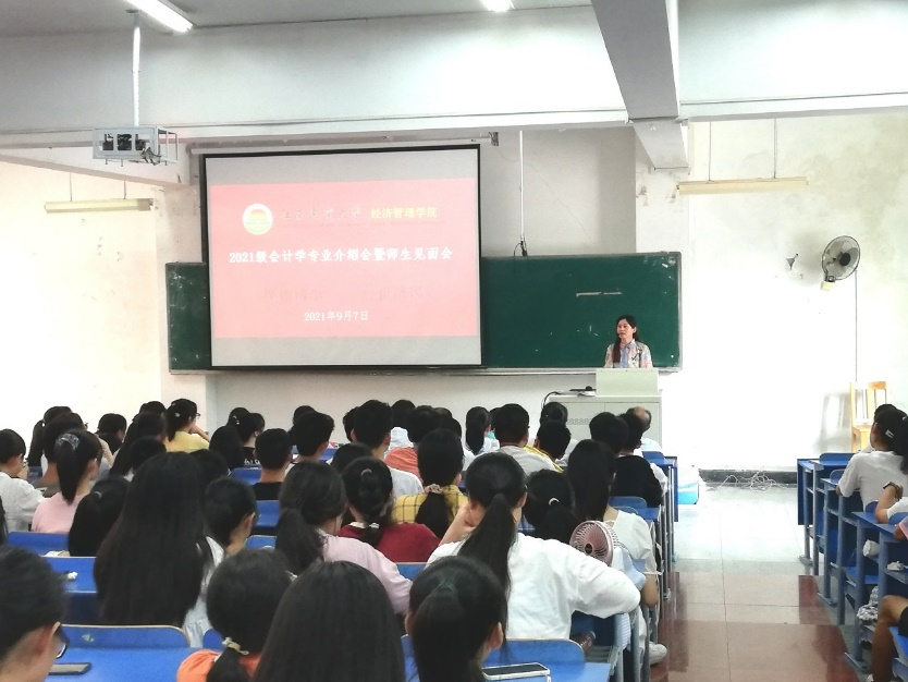 9月7日下午,我院会计系于E教115教室召开2021级会计学专业介绍会暨师生见面会。学院翁贞林院长、张征华副院长、会计系全体教师出席,会计系主任吴丽萍老师主持会议,2021级会计学专业全体新生及新生辅导员参与此次见面会。