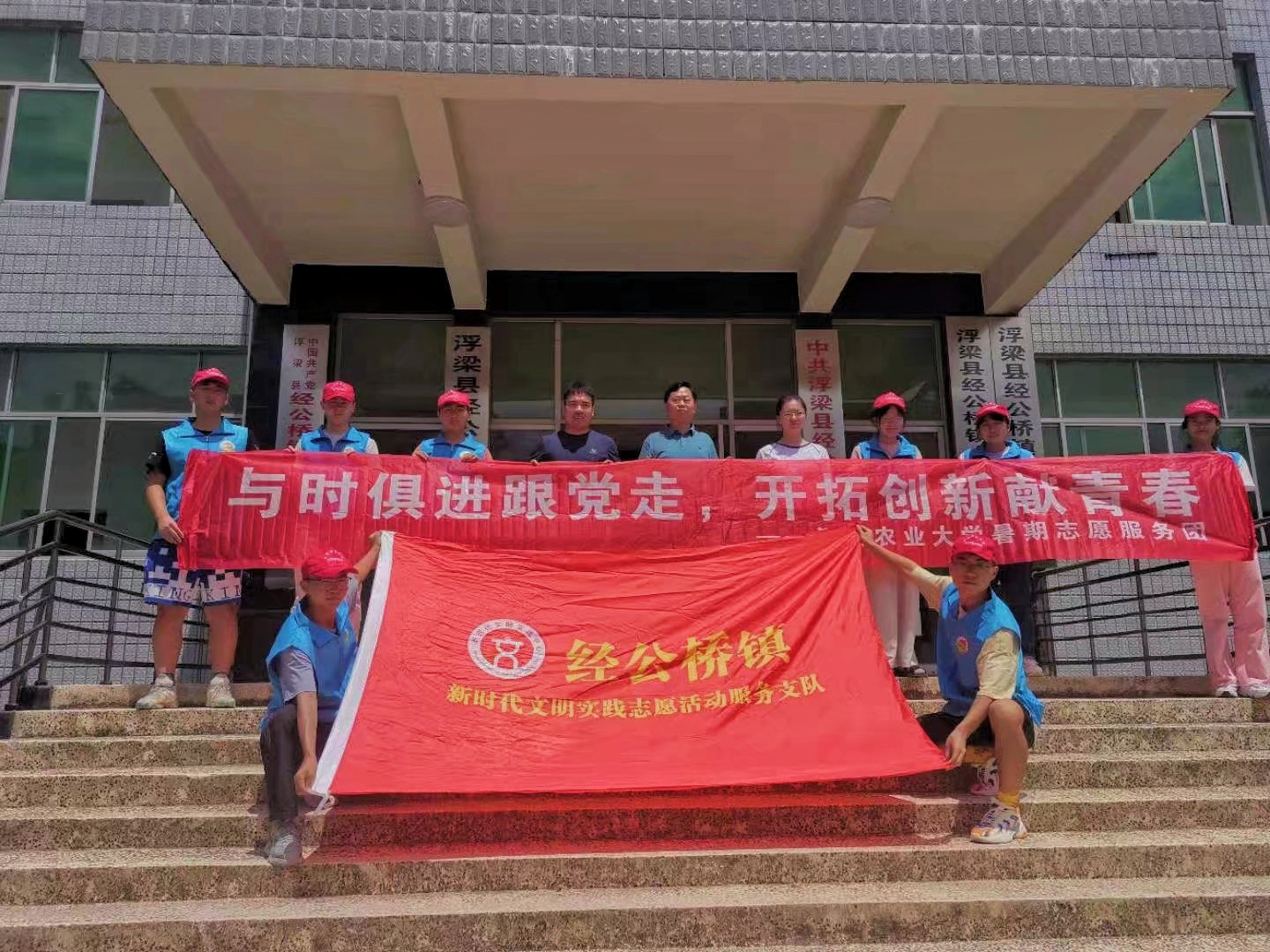 为推进“新时代文明实践中心”建设走深走实,发挥新时代青年大学生在服务实践中的积极作用,7月18日至25日,我院经管2003班施建魁等9名同学在廖冰老师的带领下,赴浮梁县经公桥镇“新时代文明实践中心”开展以“与时俱进跟党走,开拓创新献青春”为主题的暑期志愿服务实践活动,为期7天,旨在让服务活起来、实起来,为群众办实事,解民“急难愁盼”,真正做到理论入人心、产业强信心、关爱聚民心、服务暖人心。