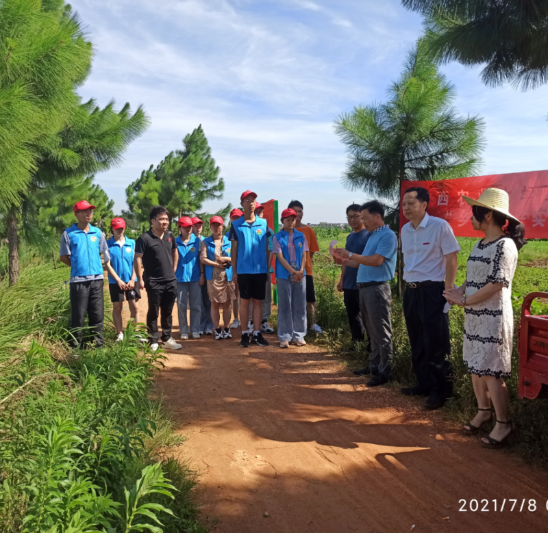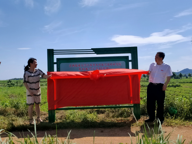 7月8日,“乡村振兴实验班”生态宜居组赴高安市荷岭镇菊坊村举行“乡村振兴示范基地”挂牌暨驻示范基地(村)服务实践启动仪式。经管学院党委书记熊红华,高安市荷岭镇肖荏秀、张国正、刘新华等领导应邀出席仪式。荷岭镇所辖村党员、“两委”干部,生态宜居组指导老师廖冰博士、王智鹏博士,生态宜居组曾繁宏等10名同学,菊坊村村民共约25人参加了此次仪式。仪式由刘新华同志主持。熊红华与肖荏秀共同为“乡村振兴示范基地”揭牌。