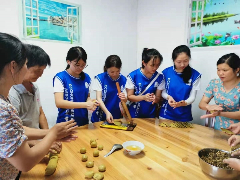 以建党100周年为契机,队员们前往崇仙乡红色文化陈列馆以增强爱国主义情操,赓续红色精神文化,传承“红色文化”基因。在崇仙乡政府还举办了以“相约崇仙乡,庆党百年”为主题的“红色文化”文艺汇演,向崇仙乡村民上演了一场“红色”文化视听盛宴。此外,米果是崇仙乡特色小吃、非物质文化遗产,队员们积极参与制作“米果”,感受非遗手艺的快乐,增强了队员们文化遗产保护意识。