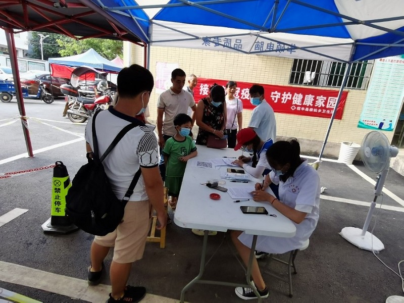 队员们协助崇仙乡卫生院开展新型冠状病毒疫苗接种宣传、接种适龄人群摸排登记等工作,为村民普及新型冠状病毒疫苗知识,及时解答居民们的问题。测量体温、协助医生流调、控制现场人数、预检区引导、回答解疑、帮助登记、接种区巡回、留观区提醒……当地疫苗接种工作有序开展,为共同疫情防控安全屏障贡献力量。