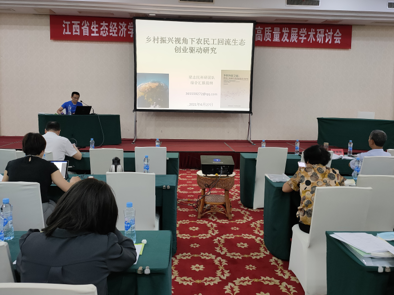 “双碳”(碳达峰碳中和)是党和国家对全国人民做出的庄严承诺,已纳入生态文明建设整体布局,旨在促进生态经济高质量发展。为深刻理解“双碳”、生态文明、生态经济高质量发展等“生态经济领域”当前学术前沿热点,6月26日,我院副院长廖文梅教授带领农经系廖冰、李领营、王智鹏三位教师与硕士生徐浩、张予涵、蒋巧丽、李毓梅、林静、邹佳敏一行10人赴九江武宁参加了以“探索碳达峰碳中和路径、纵深推进生态文明建设”为主题的“第四届国家生态文明试验区建设(江西)论坛”。6月27日,廖文梅教授一行10人与我院工商系梁志民教授在江西南昌共同参加了以“生态经济高质量发展的理论与实践”为主题的“江西省生态经济学会2021年学术年会暨生态经济高质量发展研讨会”,其中,梁志民教授做了题为“乡村振兴视角下农民工回流生态创业驱动研究”的主题报告。通过两天的交流、研讨与学习,师生们受益匪浅。