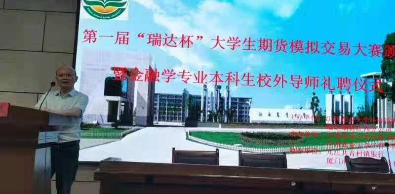 为提升学生综合实践能力,更好适应新形势下人才的需求,历时1个多月的首届“瑞达杯”期货模拟交易大赛圆满落下帷幕。6月8日下午,大赛颁奖暨金融学专业本科生校外导师礼聘仪式在经管教研楼207举行。瑞达期货江西分公司总经理张天勇、瑞达期货农产品事业部总经理连小灵、九江共青村镇银行董事长孙小倩女士、院党委副书记肖明、副院长张征华、院团委及金融系全体教师出席,金融系学子参与此次活动。仪式由金融系刘小春主任主持。