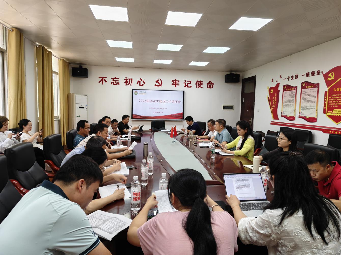 为深入贯彻学校关于推动高质量就业的工作部署,扎实推动2025届毕业生更充分就业,6月3日下午,学院于经世楼204室召开2025届毕业生就业工作调度会。学院领导班子成员、教研室主任、学科点负责人及党支部书记参会,会议由学院党委书记熊龙彪主持。
