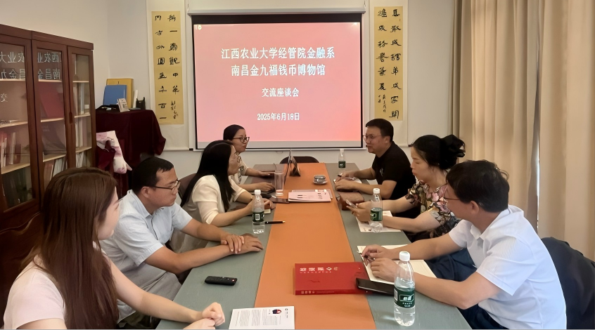 本次参观学习与交流座谈为江西农业大学经济管理学院与金九福钱币博物馆的深度合作奠定了坚实基础,开启了馆校协同育人新篇章。双方表示将以此次合作为契机,充分发挥各自优势,整合资源,创新模式,共同为培养兼具深厚文化底蕴、扎实专业知识和创新实践能力的新时代金融人才贡献力量,为传承弘扬中华优秀金融文化注入新活力。