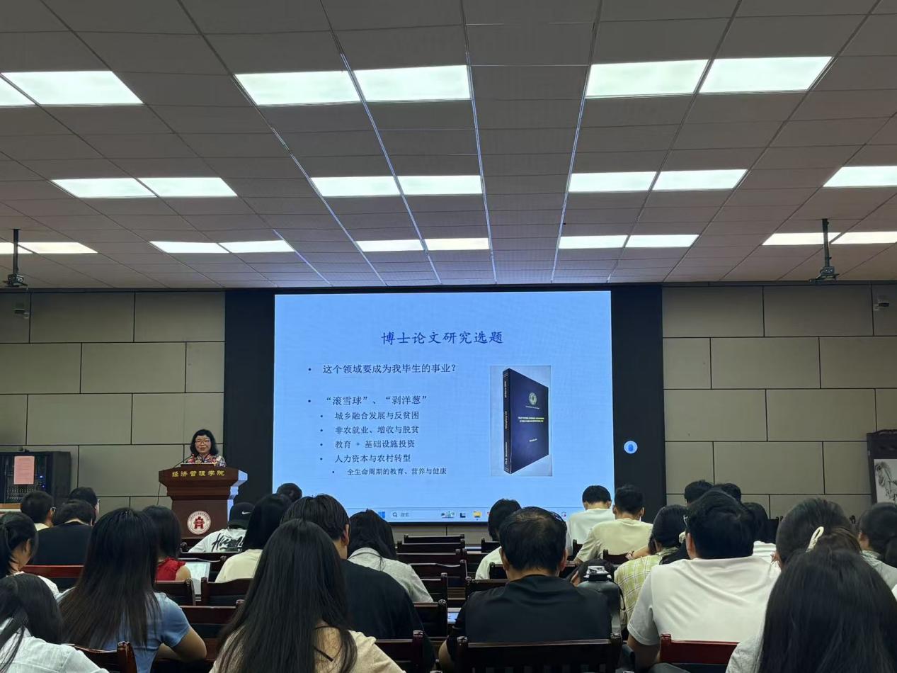 9月28日上午,北京大学博雅特聘教授、北京大学现代农学院副院长、中国农业政策研究中心副主任刘承芳在经世楼207会议报告厅为经管学院硕博研究生作专题学术报告。经管学院院长李剑富、学院部分老师与200余名硕博研究生现场共同聆听此次学术报告会。农林经济管理学科点负责人主持报告会。