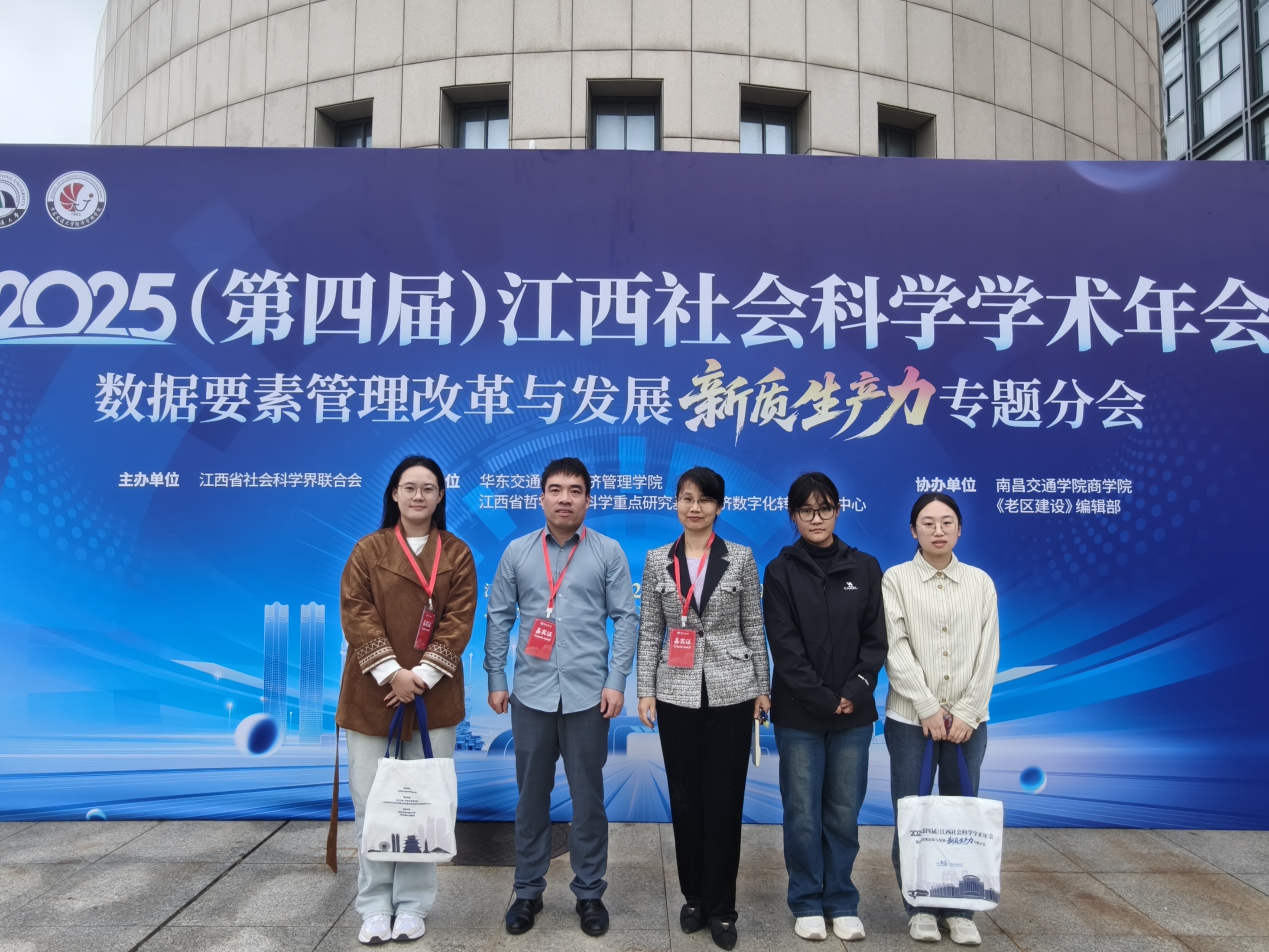 10月19日,由江西省社会科学界联合会主办的2025年第四届江西省社会科学学术年会“数据要素管理改革与发展新质生产力”专题分会在华东交通大学顺利举行,我院高雪萍教授、廖冰副教授带领硕士生应邀参与此次会议。