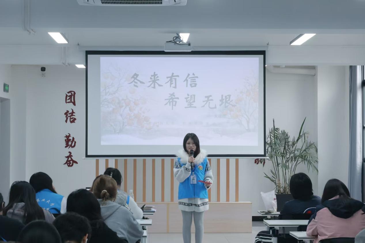 在文化宣讲环节,“金种子”宣讲团的三位成员分别从不同角度阐释立冬文化的丰富内涵。叶嘉轩同学以《壹叶知冬,时序相安》为题,生动讲述了立冬时节的生活习俗与人文情怀;曾雅兰、刘艳同学合作的《立冬:天地归藏,农事新章》,系统解读了节气背后的农耕智慧与文化理念;黄瑞懿同学则以深情朗诵《冬来有信,希望无垠》,传递出冬日里蕴藏的生机与希望。