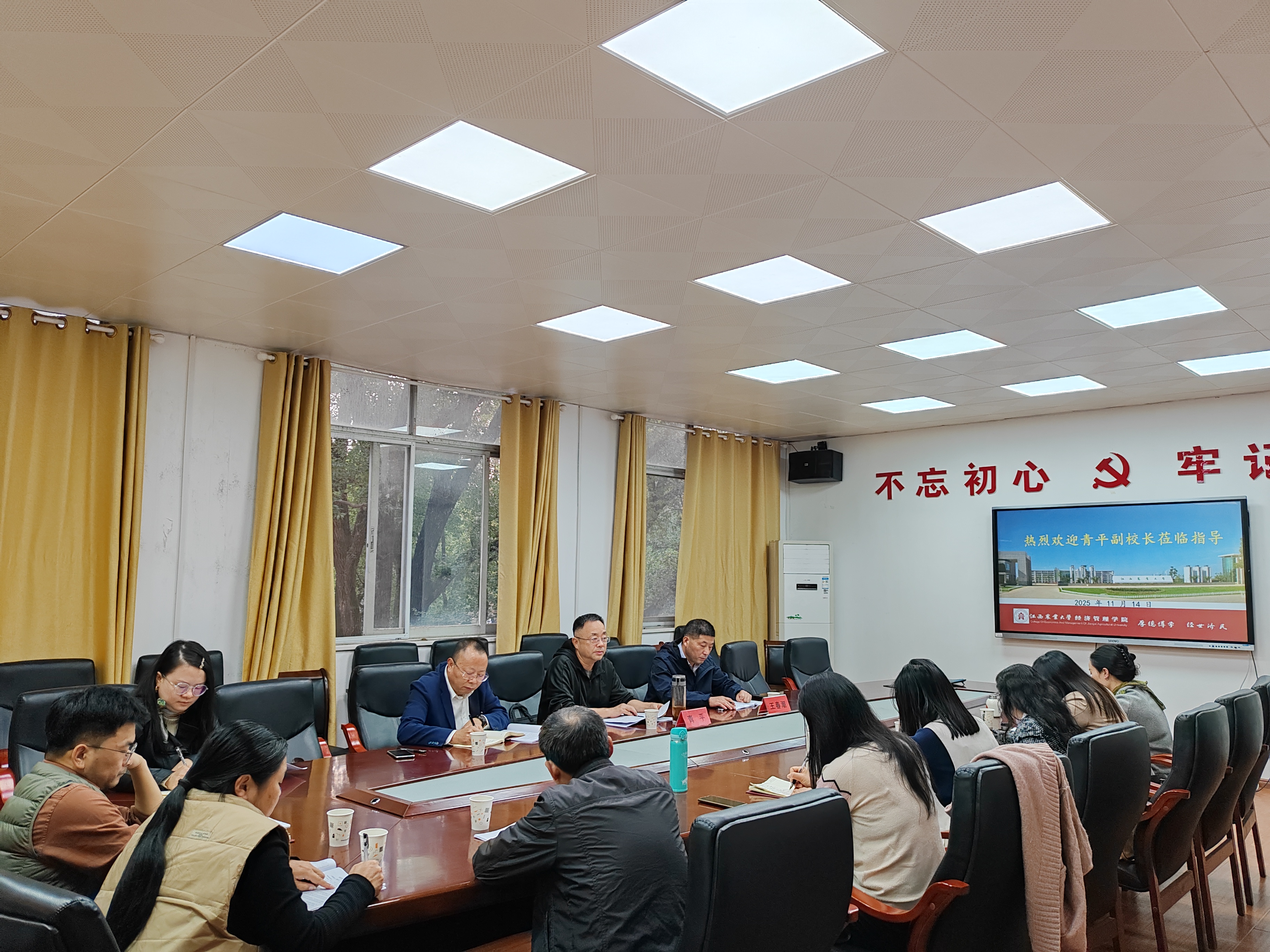 11月14日,华中农业大学副校长青平教授、本科生院质量与评估处处长王春潮一行应邀莅临经管学院指导人才培养与国家基金申报工作,学院各系系主任、青年科研教师等20余人参加,会议由经管学院院长李剑富教授主持。