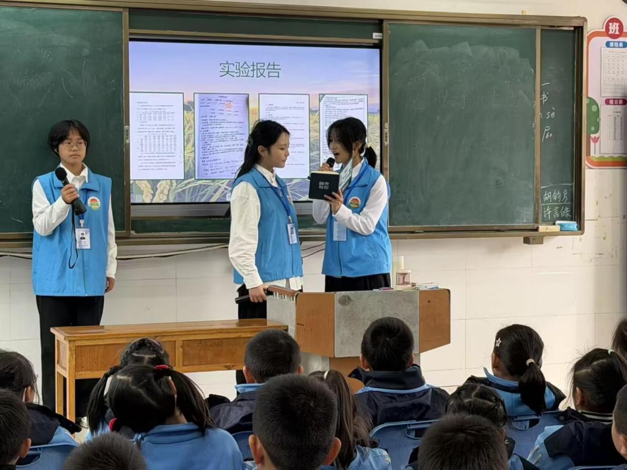 宣讲团成员以《袁隆平:一粒种子的一生》为题,通过情景讲述、互动问答等方式,向一年级小学生讲授了了袁隆平院士扎根田间、潜心科研的感人事迹和科学家精神,感受科学家的执着与坚守;通过与小学生协手制作“冬至香锤”,讲解节气习俗与文化寓意,让小学生在实践体验中领悟传统智慧。活动现场温馨而充满活力。
