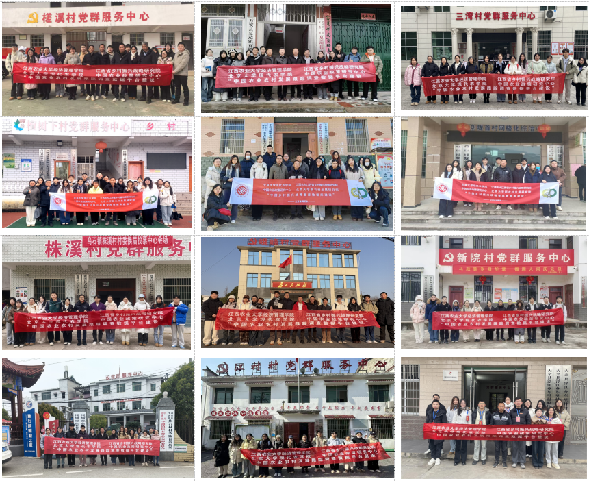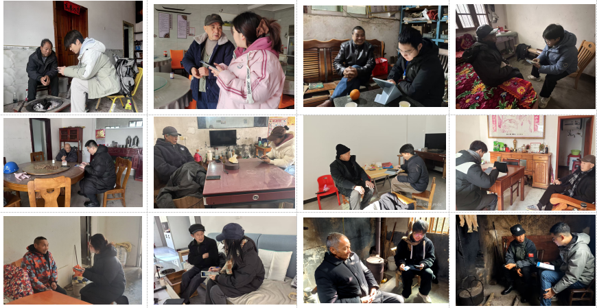 1月19日起,调研组赴12个样本县的样本村开展入户调查。期间遭遇寒潮,严寒天气给调研工作带来较大困难,但队员们秉持严谨细致、吃苦耐劳的作风,克服低温、访问时间长、农户外出等挑战,稳步推进访谈工作。北京大学黄季焜教授全程在线指导、答疑,带队教师与队员及时交流解决各类问题,确保调研概念统一、操作规范。入户结束后,各组严格执行问卷自查、互查及队长审核机制,保障数据质量。经济管理学院高度重视本次调研,前期多次召开带队组长会议进行周密部署。学院党委书记廖文梅、院长李剑富、副院长张征华,江西省乡村振兴战略研究院执行院长翁贞林、副院长郭锦墉、胡凯,江西省农村发展研究中心主任朱述斌、副主任刘滨等亲自实地指导调研团队,以及翁贞林、廖文梅、汪兴东、刘小春、梁志民、陈江华、蔡桂云、徐冬梅、邱海兰、宋振江、王智鹏、肖小玮、谌洁、叶锋、李秋生、吴丽萍、李领营、陈淑婷、李宏晖、范诗雯、袁云云等老师全程深入参与实地调研全过程,为学生作出表率。调研过程中得到了12个县的调研点当地政府、职能部门、村干部和广大村民的大力支持和帮助。