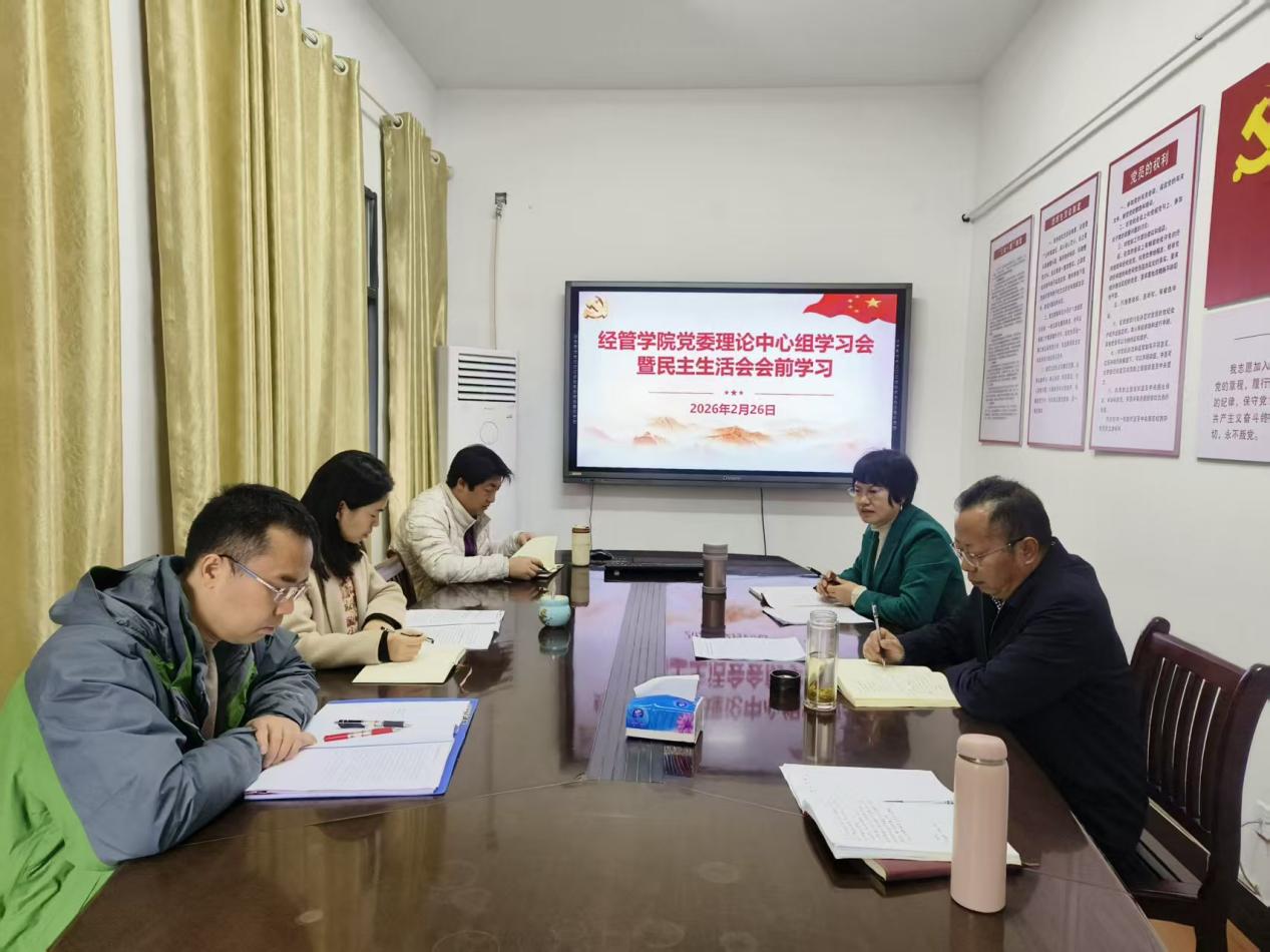 2月26日上午,经管学院党委领导班子召开理论学习中心组学习会暨民主生活会会前学习,会议由院党委书记廖文梅主持,院党委领导班子全体成员参加会议。
