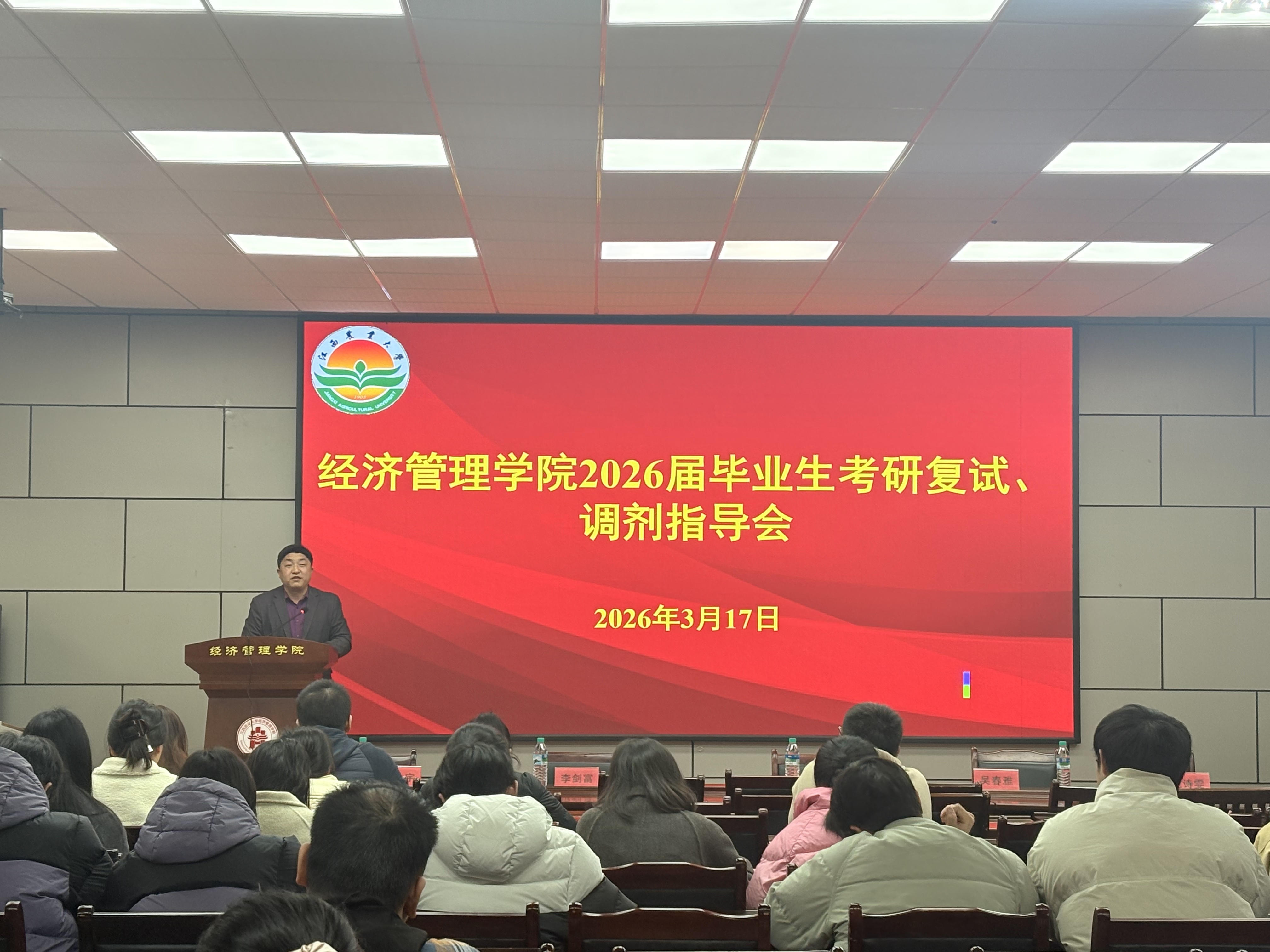 为帮助2026届考研学生科学备战复试、合理规划调剂,3月17日下午,经济管理学院在经世楼207召开2026届毕业生考研复试与调剂指导会。学院班子成员、辅导员、教师代表、硕士研究生代表及2026届考研上线毕业生参加活动。