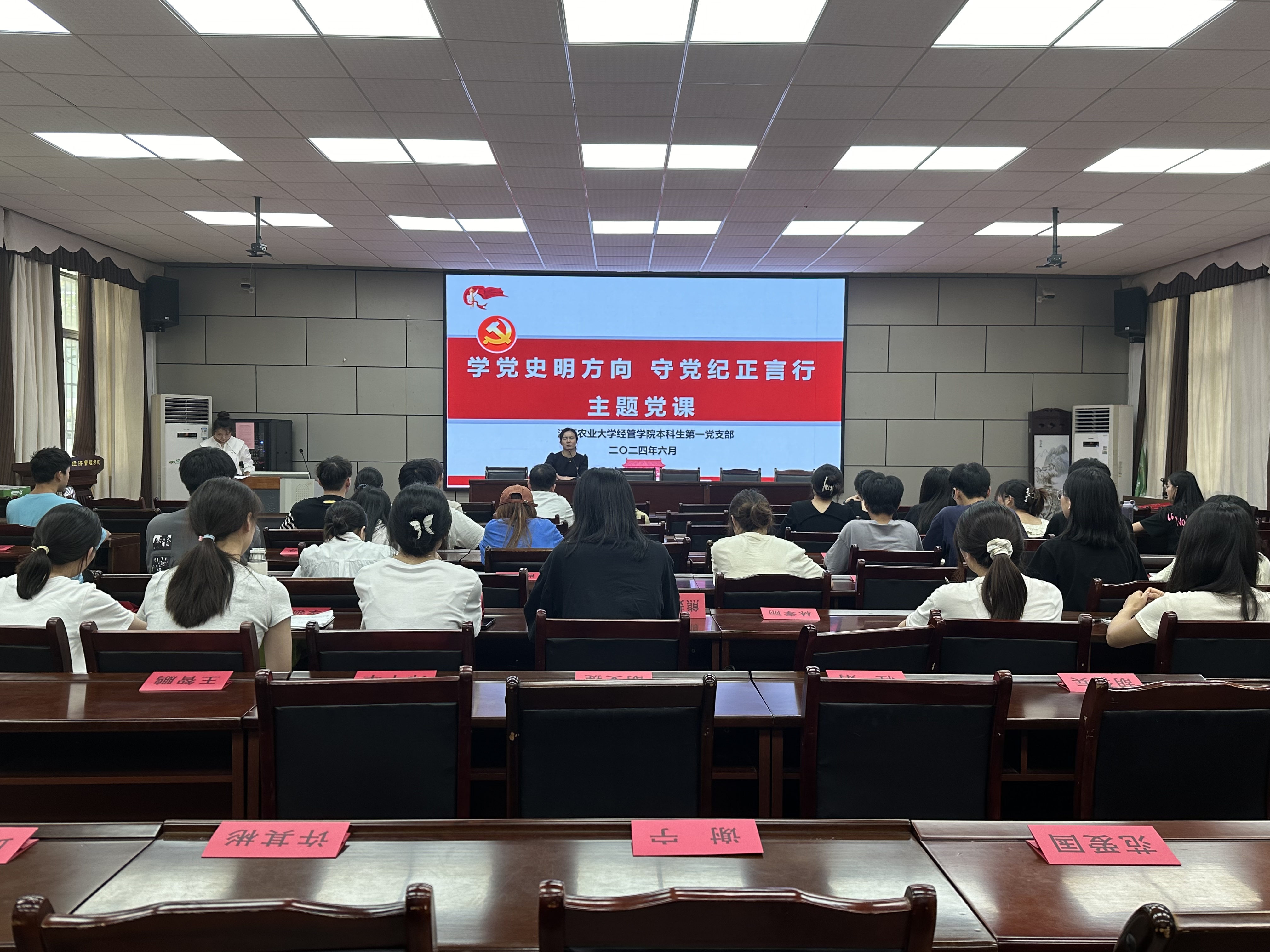 为进一步深化党员对党纪党规的认识,提升党性修养,经济管理学院本科生第一党支部于六月举行了以“学纪正风强党性,担当作为建新功”为主题的党日活动。通过支部书记讲党课、党纪学习教育心得分享、重温入党誓词等形式不断引导支部成员自觉遵守党的纪律规定,以实际行动践行党的宗旨和党的纪律要求。
