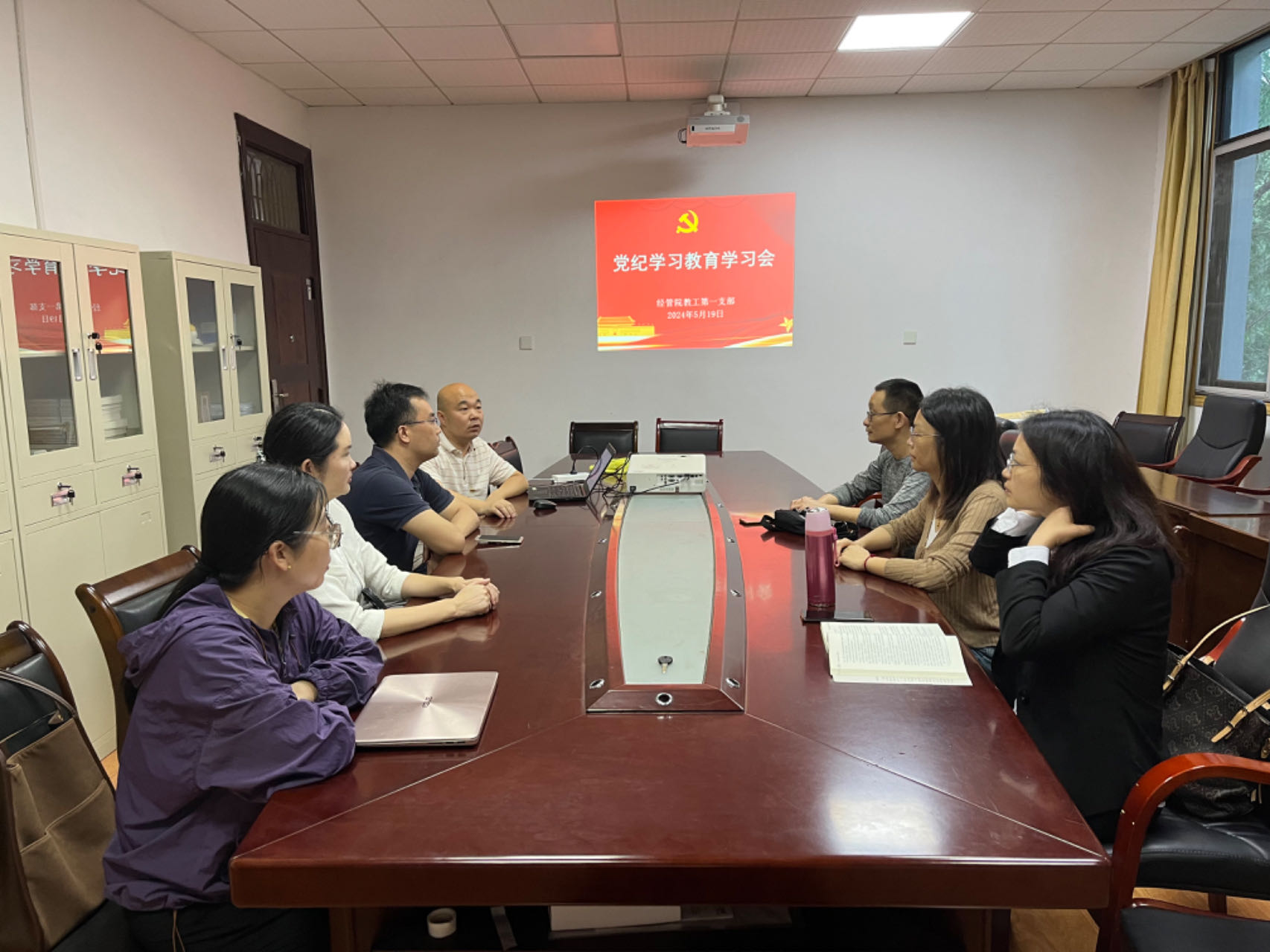 为进一步落实党纪学习教育,增强党员干部的党性观念,5月21日下午,经济管理学院教工第一党支部以《解读中国共产党纪律处分条例》为题开展党纪学习教育专题党课。教工第一党支部全体党员参与,会议由支部书记郑瑞强主持。