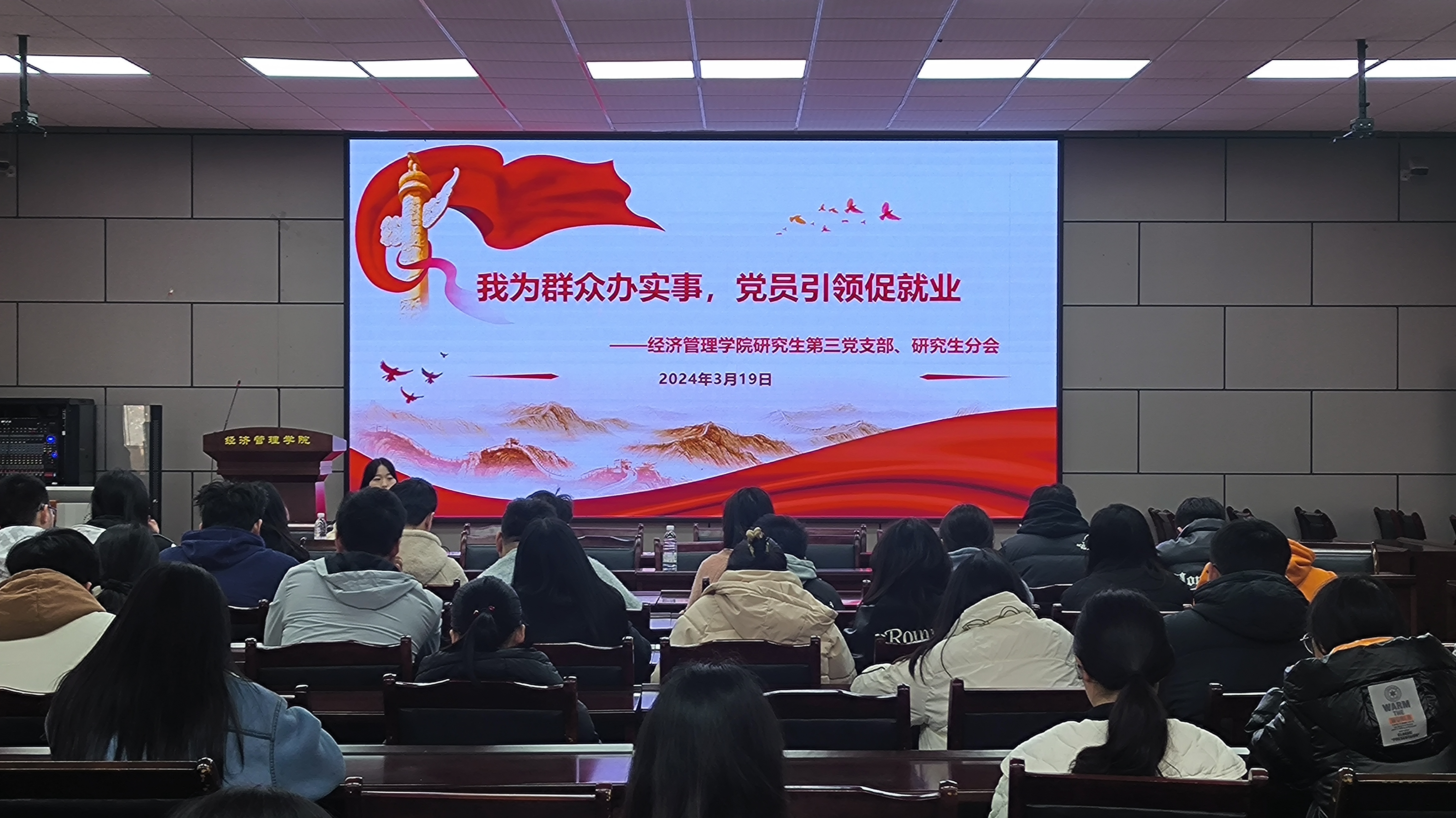 为帮助考研学生提升考研复试竞争力,切实提高学院升学率,助力毕业生高质量就业,3月19日下午3∶30,研究生第三党支部与研究生分会于经世楼207联合开展“我为群众办实事,党员引领促就业”主题党日活动,支部党员、研究生分会干部和140余名考研学子参与活动。