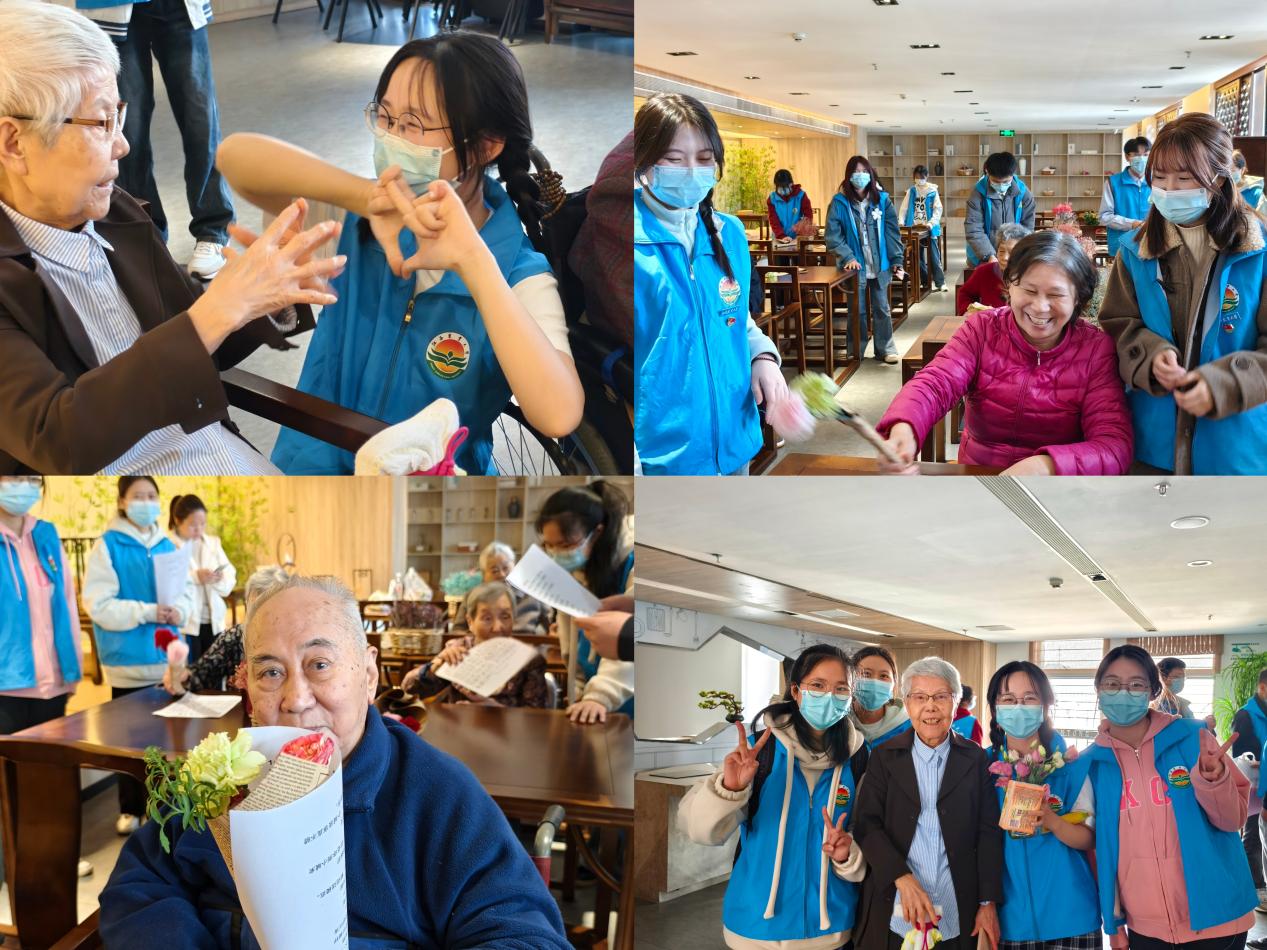 活动期间,党员志愿者们分别进行包装花束、陪护老人和除草活动。活动在愉快的音乐声中拉开序幕,志愿者们带来鲜花,协助老人制作包装花束,带领老人们开展丢沙包、抢杯子等室内游戏;陪同行动不便的老人聊天、话家常。同时,党员志愿者们同步在院内进行杂草清除、清扫花园等活动。在暖阳下,志愿者与老人们一同欣赏春色,留下欢声笑语,享受和谐美好的春日时光。活动最后,所有人员在横幅上签名并合影留念,此次活动圆满结束。
