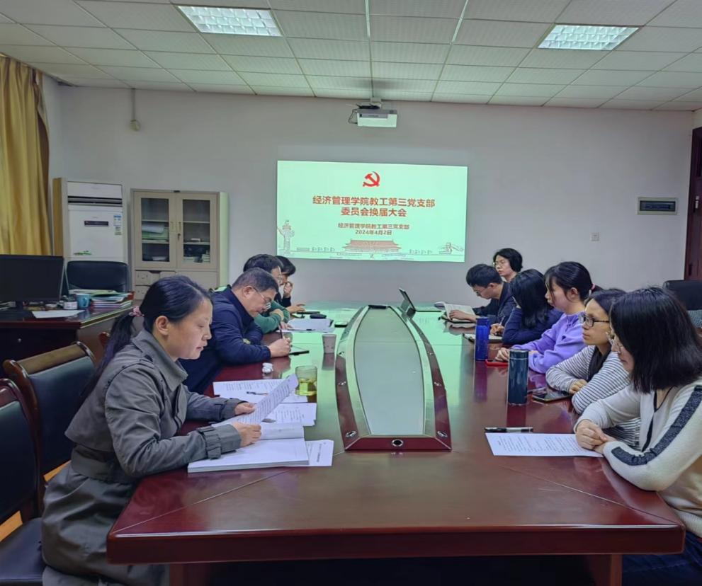 为进一步加强基层党组织建设,充分发挥党组织的战斗堡垒作用和党员先锋模范作用,根据《中国共产党章程》和《中国共产党基层组织选举工作条例》等有关规定,经院党委同意,2024年4月2日下午,教工第三党支部换届会议暨党员大会在经世楼304室召开。支部党员、院党委熊龙彪书记到会指导,会议由教工第三党支部书记刘小春主持。