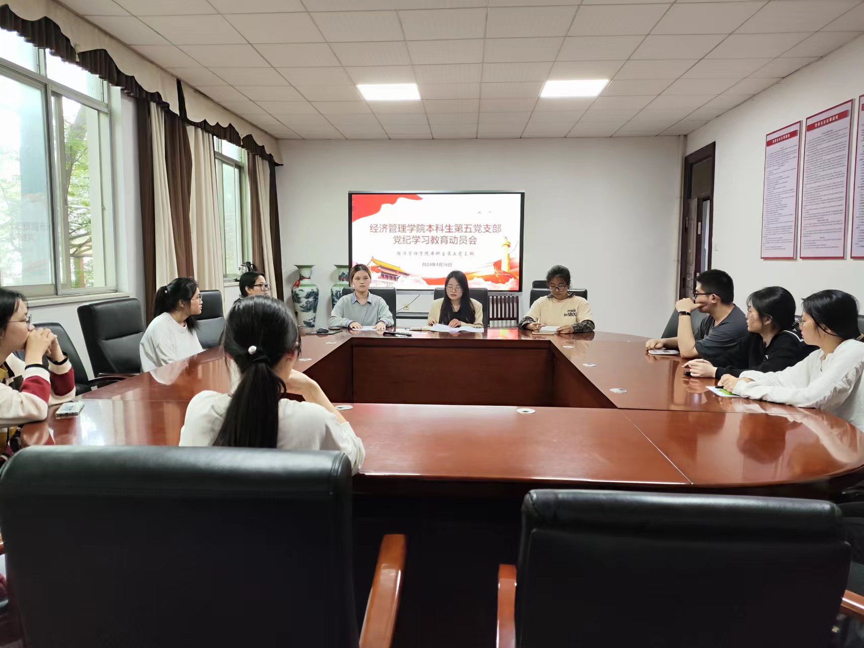 为进一步加强基层组织建设,根据党章和《中国共产党基层组织选举工作条例》有关规定,经上级党委同意,4月16日,经管学院本科生第五党支部在经世楼212召开支委换届大会暨党纪学习教育动员会,支部全体党员参加。此次大会由支部书记李子琳主持。