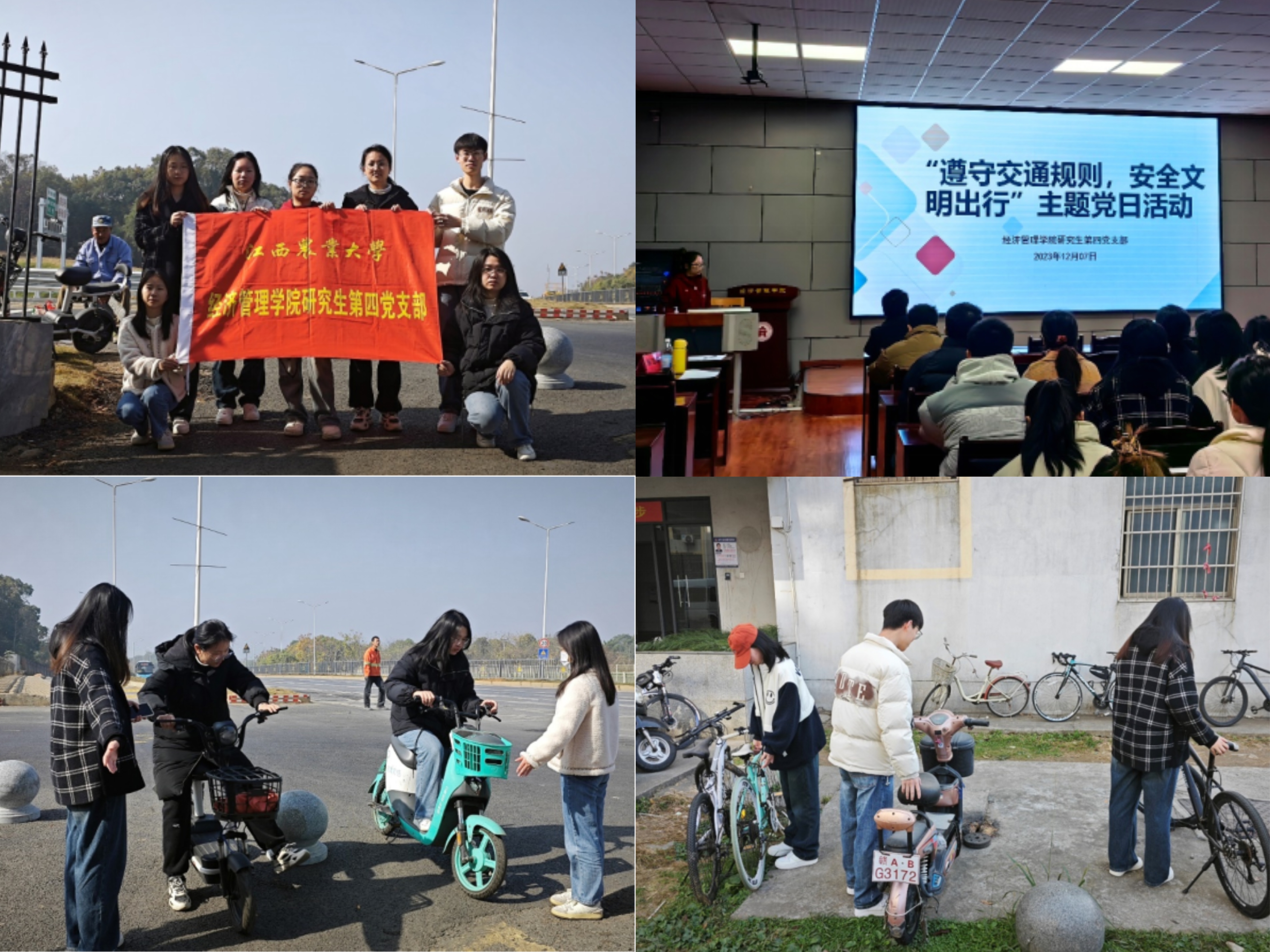 为强化大学生交通安全意识,12月7日,经管院研究生四支部开展“遵守交通规则,安全文明出行”主题党日活动。此次活动以维护校园交通安全为重点,共同建设安全和谐校园环境。