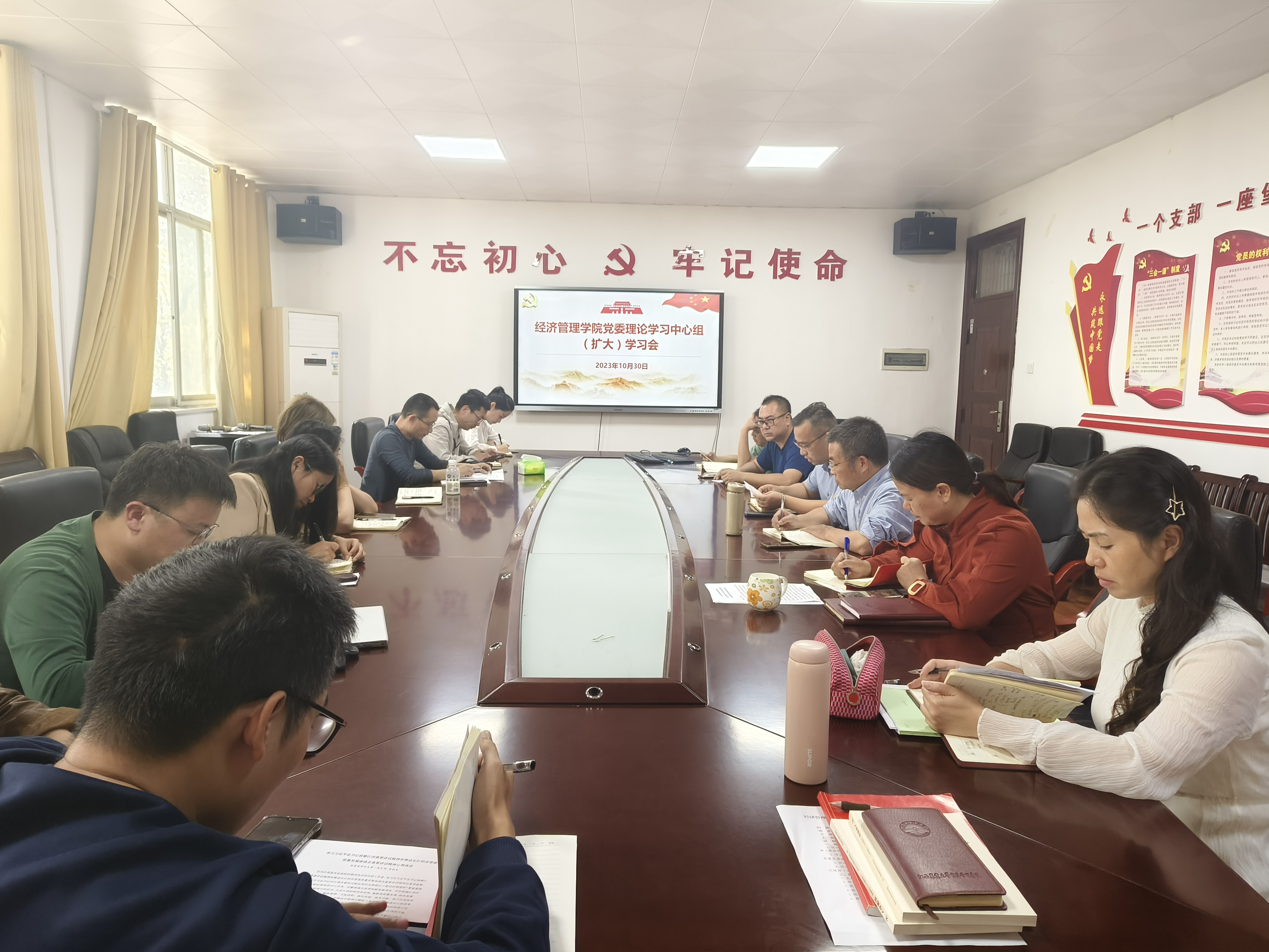 为进一步深入系统学习领悟习近平总书记考察江西重要讲话精神,10月30日下午,经管学院党委于经世楼204室召开党委理论学习中心组(扩大)学习会,全体党委领导班子成员、各支部书记参加会议。会议由院党委书记郭军海主持。