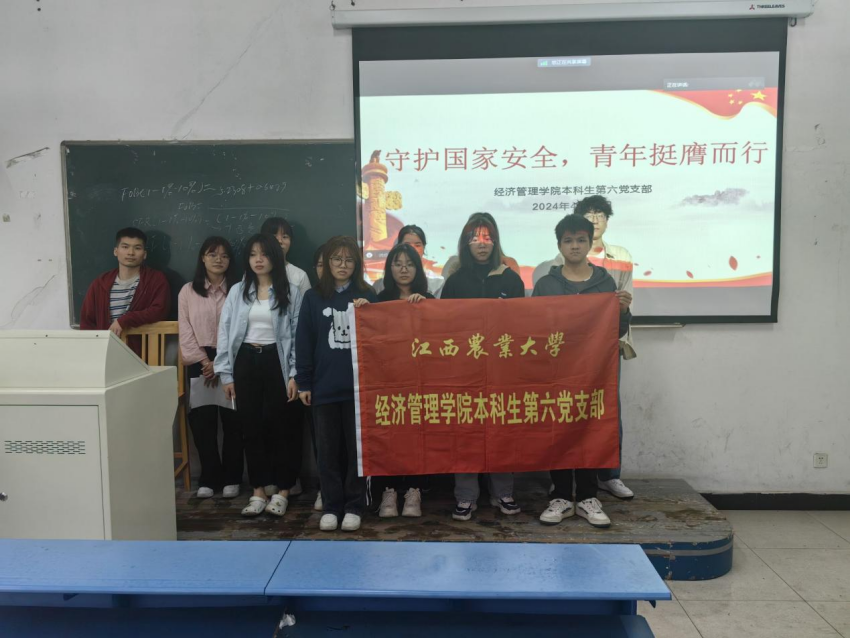 为深入学习习近平总书记关于全面加强国家安全教育的重要指示精神,加强党员们总体国家安全观意识,使党员们懂得守护国家安全是每一个公民应尽的义务。2024年4月18日,本科生第六党支部全体党员在教学楼208开展了“守护国家安全,青年挺膺而行”主题党日活动。