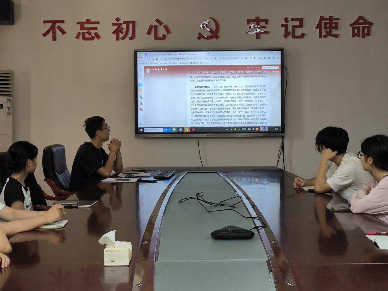 活动伊始,党支部书记王建平学习传达了学院党委关于2024年度“新时代赣鄱先锋”学习宣传暨“新时代赣鄱先锋”创绩提升行动的具体要求,并以学校2024年度新时代赣鄱先锋获得者陈裕鹏、张令、向妙莲三位同志的先进事迹为切入点,深入刨析了赣鄱先锋的深刻内涵和现实意义。他强调一要以“新时代赣鄱先锋”为榜样,深入学习,将先进典型的精神力量转化为实际行动,做好学生群体当中的先锋模范;二要持续学习贯彻党的二十届三中全会精神,结合创绩提升行动,激发自身创先争优的内生动力,从而更好地发挥先进党员的示范带动作用。三要努力学习专业知识,不断提升自己的专业素养和综合素质,在思想引领、专业学习、学科竞赛、社会实践等方面“走在前、勇争先、善作为”。