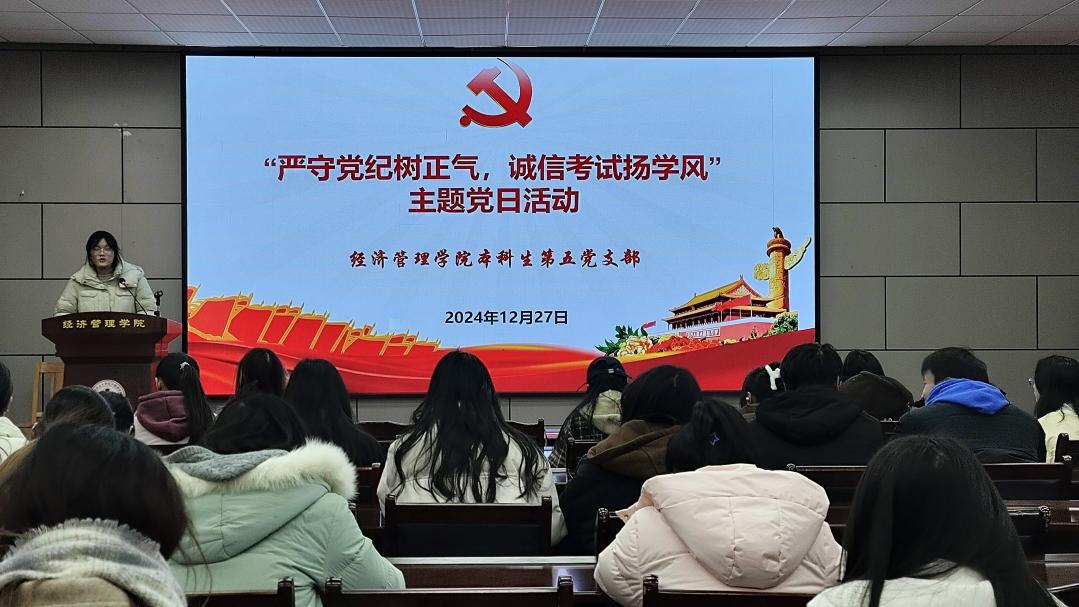 为强化支部党员党性教育与纪律意识,发挥党员模范带头作用,引领诚信学风、考风,经管院本科生第五党支部于12月27日中午开展主题为“严守党纪树正气,诚信考试扬学风”党日活动。支部全体党员及部分积极分子参与此次活动。