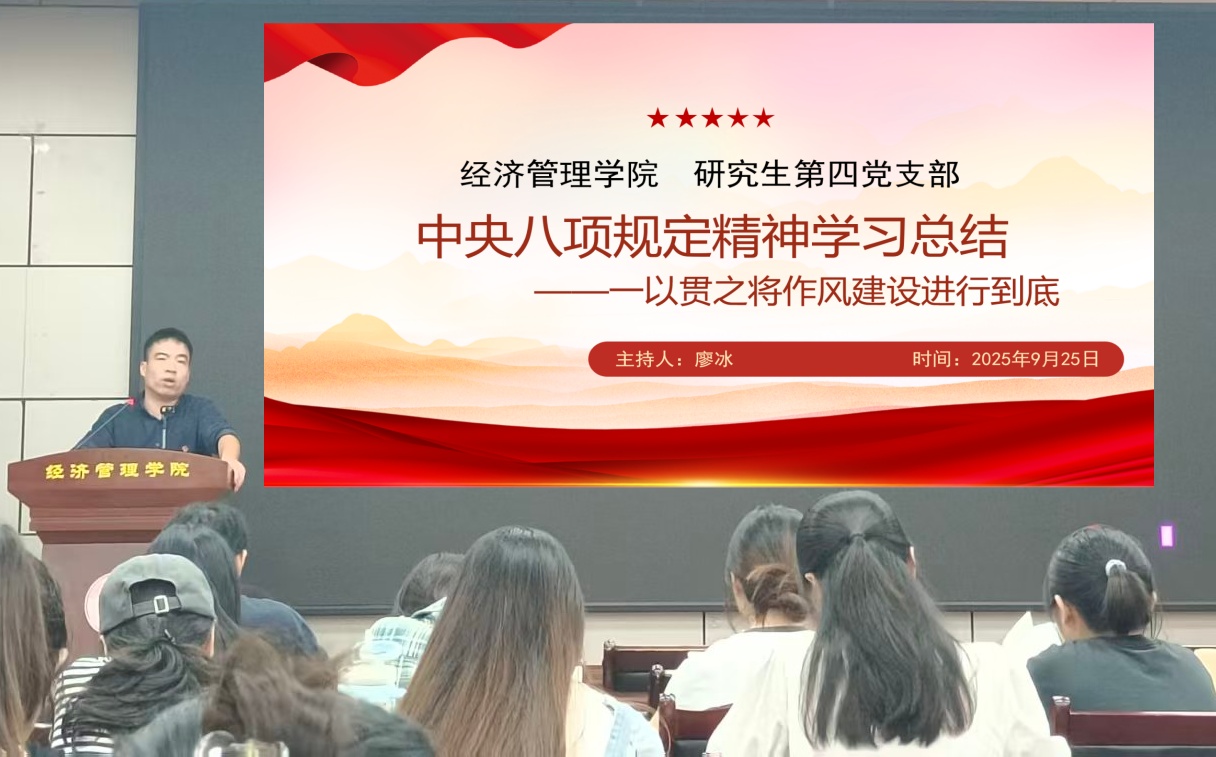 9月25日晚上,经管学院研究生第四党支部在经世楼207会议室召开全体党员大会,全面总结深入贯彻中央八项规定精神学习教育。党支部书记廖冰同志主持会议,党支部全体党员参加会议。