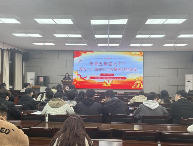 为深入学习贯彻党的二十届四中全会精神,准确把握“十五五”时期国家发展的战略方向与目标任务,经管学院研究生第一党支部于11月18日在经世楼207开展以“未来五年怎么干?党的二十届四中全会擘画发展蓝图”为主题的党课活动。本次活动由党支部书记兰仙平主讲,党支部全体在校生党员参与。