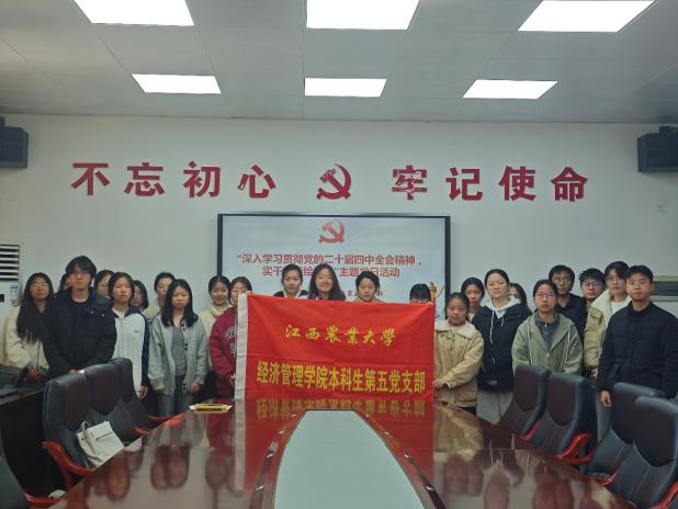 为深入学习贯彻党的二十届四中全会精神,充分发挥党员模范带头作用,弘扬求真务实的实干精神,经管院本科生第五党支部于11月21日在经世楼204开展“深入学习贯彻党的二十届四中全会精神,实干笃行绘新篇”主题党日活动。党支部全体党员及部分积极分子齐聚一堂,在理论学习与思想交流中凝聚共识、激发担当。
