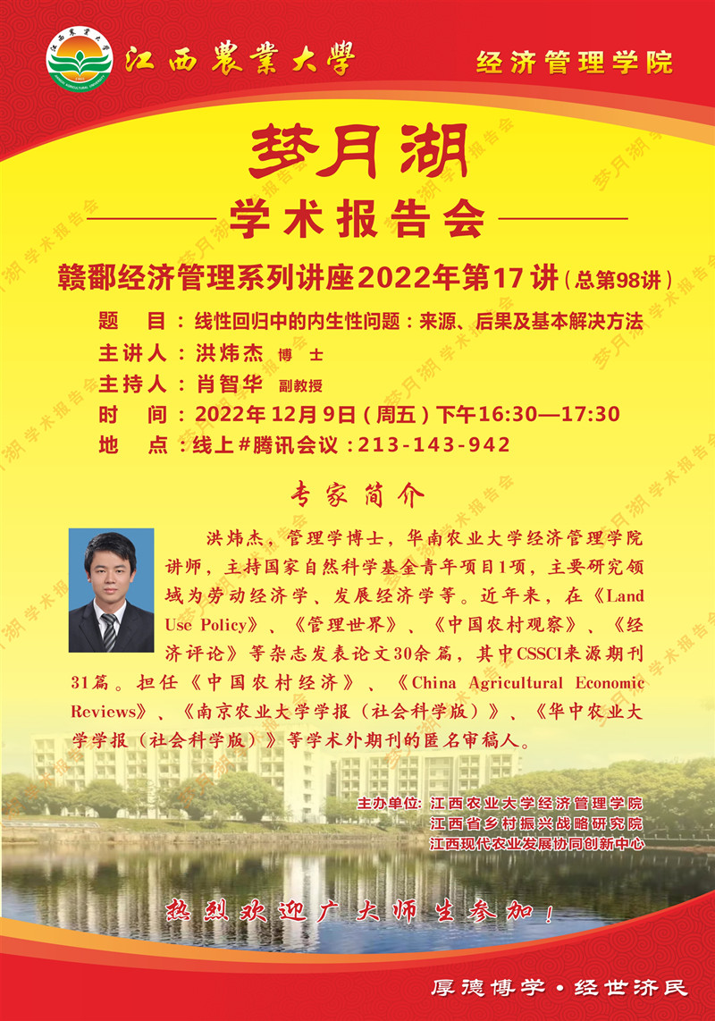 【学术报告会】线性回归中的内生性问题:来源、后果及基本解决方法