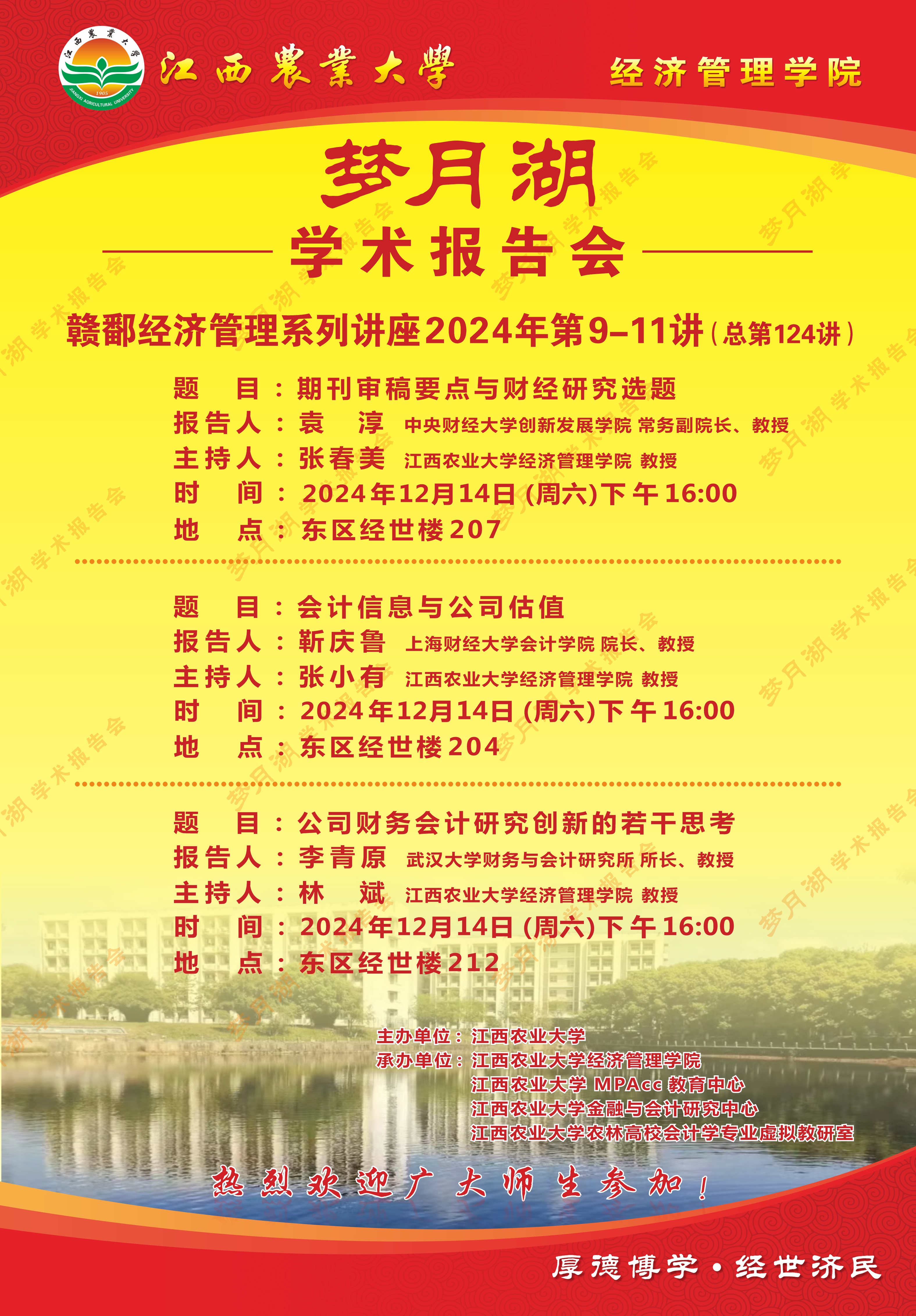 【学术报告会】赣鄱经济管理系列讲座2024年第9-11讲