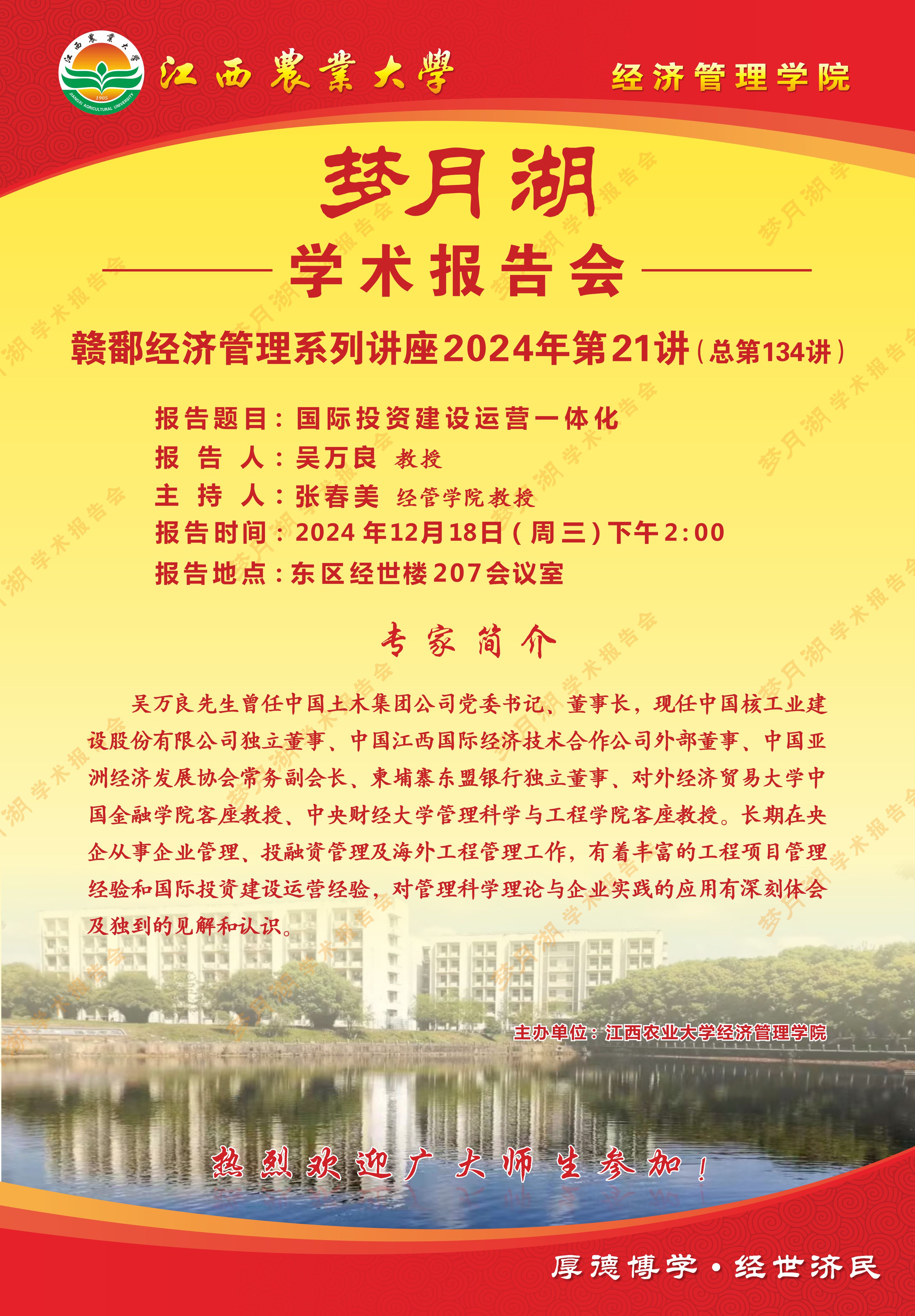 【学术报告会】国际投资建设运营一体化