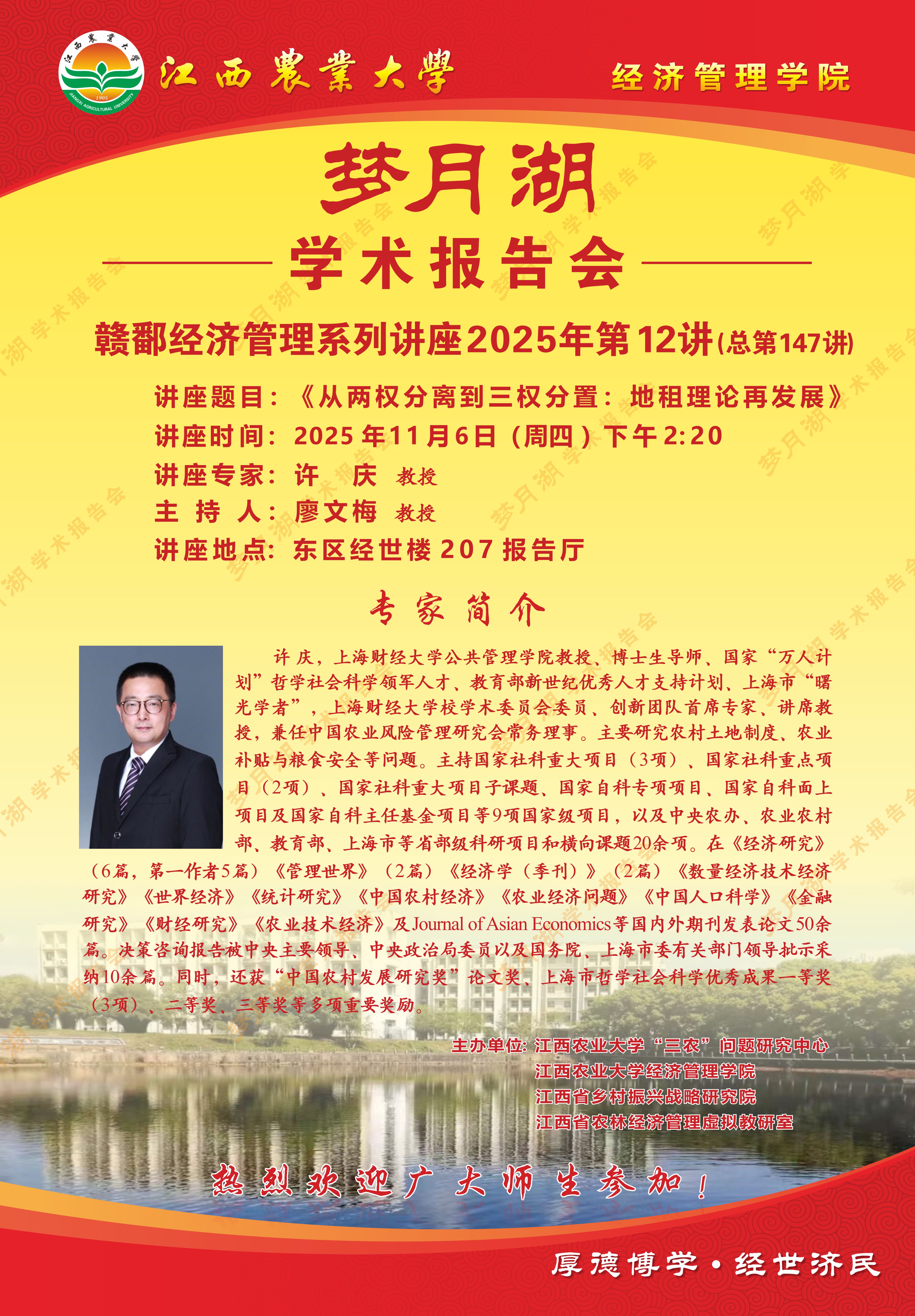【学术报告会】《从两权分离到三权分置:地租理论再发展》