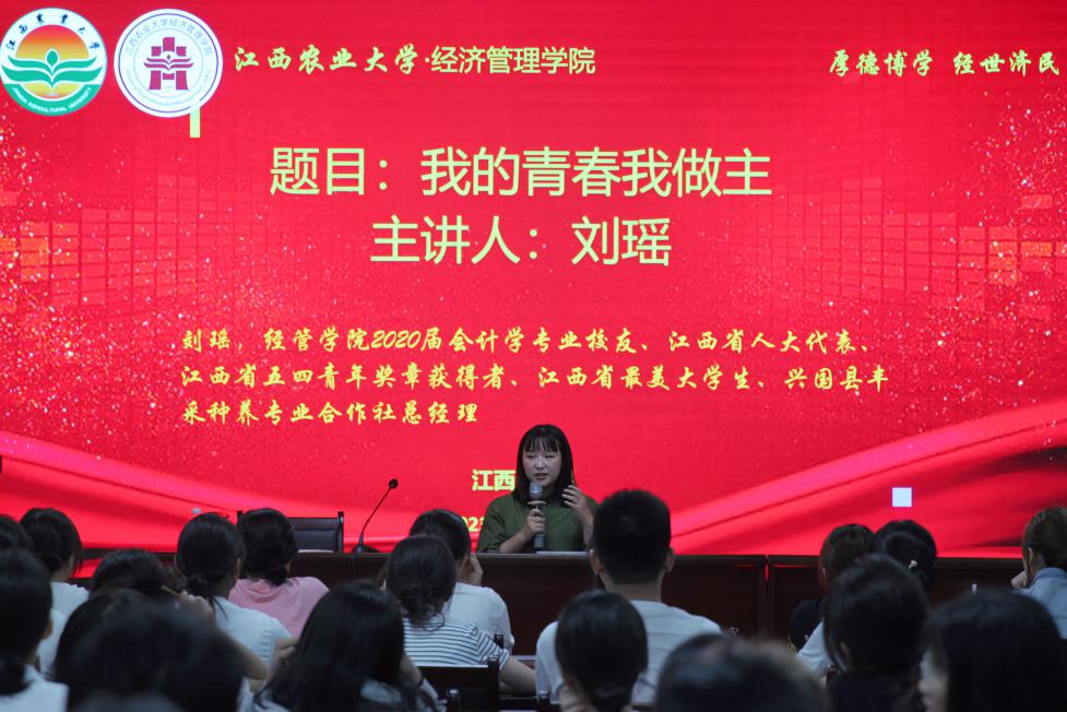 为进一步发挥优秀校友的榜样作用和辐射作用,帮助新生树立大学目标、规划大学生活、激发学习动力。9月16日晚,我院成功举办以“我的青春我做主”为主题的专题讲座。本次讲座由2020届会计学专业优秀校友刘瑶主讲,学院团委副书记王建平主持,150余位新生现场聆听。