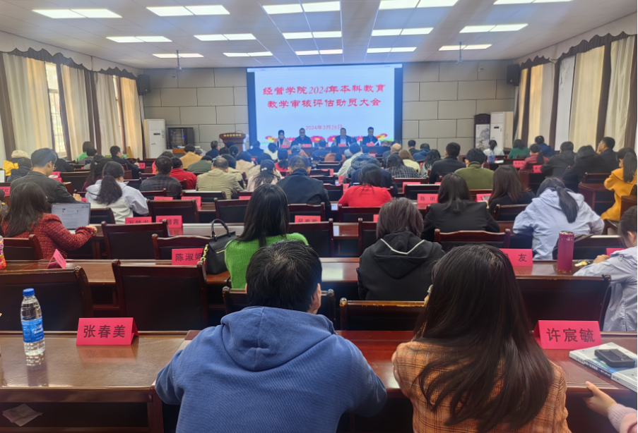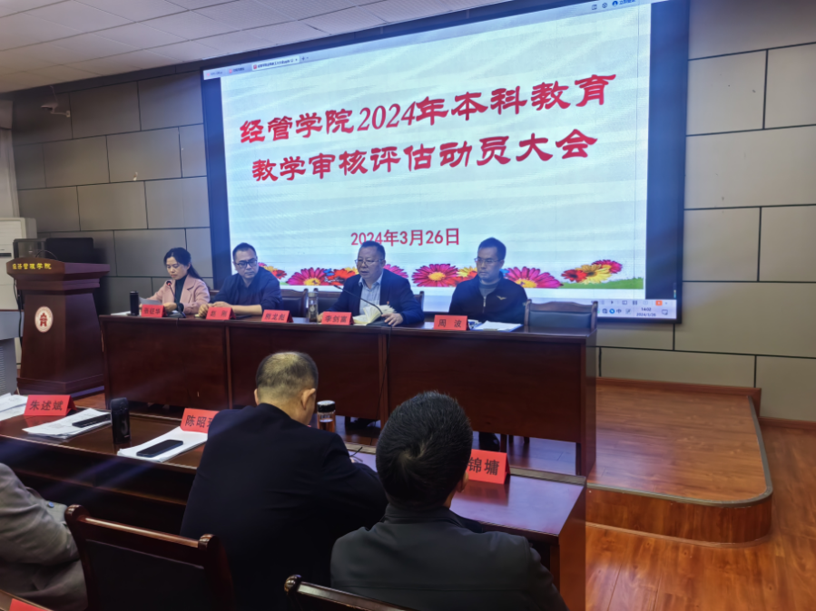 3月26日,经济管理学院在经世楼207召开2024年本科教育教学审核评估动员大会,对本科教育教学审核评估工作进行安排部署,动员全院上下统一思想、坚定信心、凝心聚力,全力以赴做好2024年本科教育教学审核评估工作。全体院领导出席会议,全院教师共100余人参加此次动员大会。