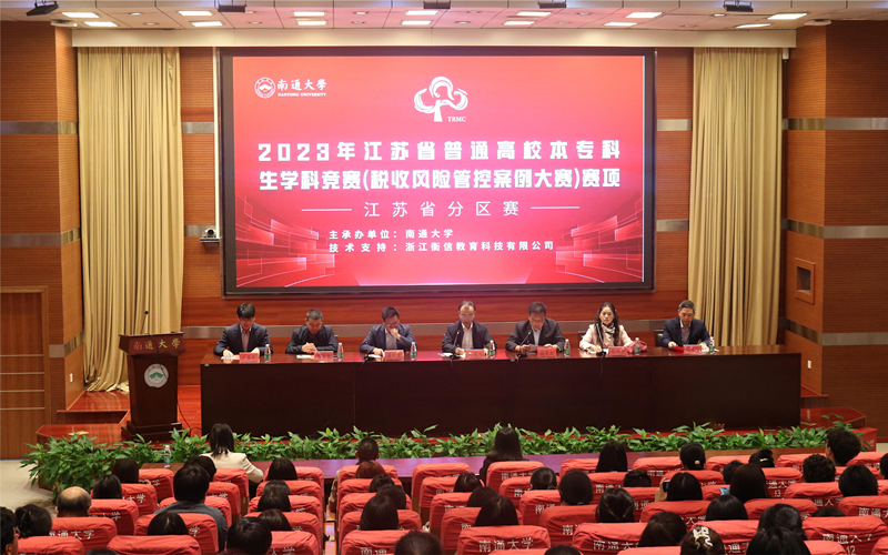 10月14日-15日,2023年全国本科院校税收风险管控案例大赛江苏省分区赛在南通大学举办。作为竞赛评审专家代表,经管学院副院长张征华教授应邀出席比赛开幕式并致辞。
