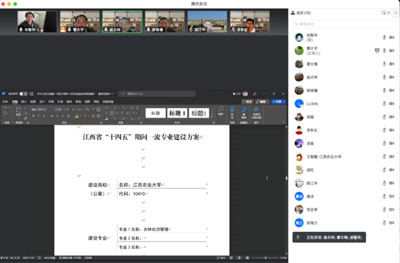 日前,省教育厅公布了江西省“十四五”一流专业建设点名单,我院农林经济管理专业入选“十四五”一流专业(优势专业)建设点。为做好一流专业建设方案编制工作,11月2日,农林经济管理系以线上会议方式召开“十四五”一流专业建设方案编制研讨会。会议围绕农林经济管理专业“十四五”建设目标任务,从改革体制机制、凝练专业特色、探索人才培养模式、创新教育教学方法、打造一流师资队伍、扩大对外交流合作、提升社会服务能力等方面进行了热烈讨论,重点讨论了一流专业建设关键和重点指标执行项目清单,逐项分析农林经济管理专业能够完成的关键和重点指标目标任务,并初步落实了各项建设任务的责任人。通过此次研讨会,明确了一流专业建设方案的重点任务,为科学编制建设方案奠定了基础。下一步,学院将邀请省内外专家对建设方案进行论证。