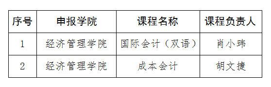 近日,校教务处公布第二批校级线上线下混合式一流本科课程建设项目遴选结果,我院肖小玮老师的《国际会计(双语)》、胡文捷老师的《成本会计》获批立项,全校共计18门课程获批立项。