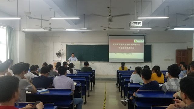 为提高本科生培养质量,加强本科生毕业论文的过程管理,保证本科毕业论文如期高标准完成,我院农林经济管理教研室于6月27日下午在先骕楼北楼108教室召开农林经济管理专业本科生毕业论文动员大会,院长翁贞林教授、教学办易步贵老师、农林经济管理教研室老师以及经管1601、1602班的全体学生参加了动员大会。