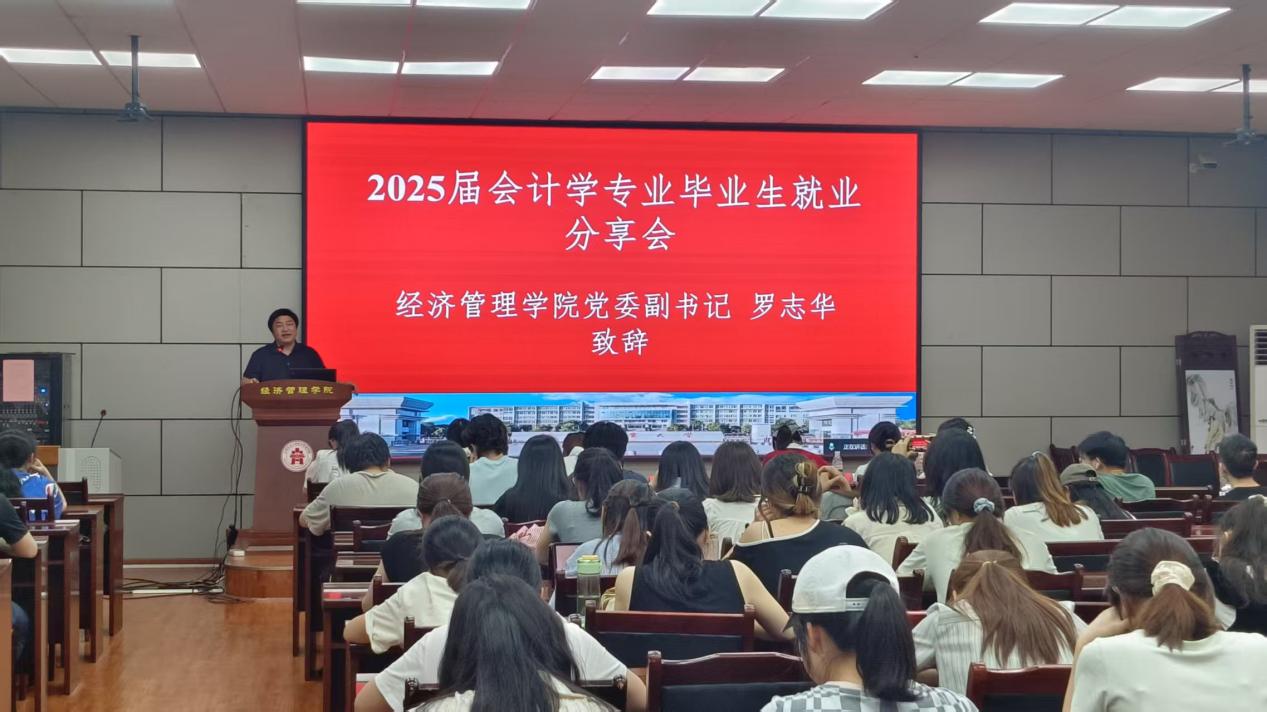 为充分发挥优秀毕业生的榜样力量,搭建毕业生与在校生的交流平台,激励会计系学子明确职业规划,做好就业打算。6月12日,经管院会计系于经世楼207举行2025届会计学专业毕业生就业分享会。经管院党委副书记罗志华应邀出席此次分享会,会计系180余位同学参加了本次分享会,本次分享会由会计系吴丽萍老师主持,。