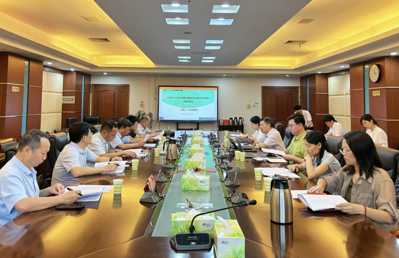 8月12日,由我校江西省农村发展研究中心主任朱述斌教授承研的《南昌市“十五五”全面推进乡村振兴规划研究》课题开题评审会在南昌市农业农村局召开,江西省农业科学院党委书记池泽新、省农业农村厅发展规划处处长肖俊华、省农业技术推广中心智慧农业处处长陈勋洪、省农业科学院农业经济与信息研究所所长付江凡、江西农业大学经济管理学院副教授吴文军等5位专家对开题报告进行了评审。南昌市农业农村局副局长陈慧到会指导,江西省农业农村厅和南昌市农业农村局部门负责同志,课题组主要成员等20余人参加会议。