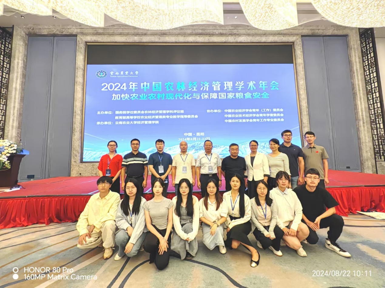 2024年8月21日至23日,2024年中国农林经济管理学术年会在昆明举办。本届年会以“加快农业农村现代化与保障国家粮食安全”为主题,由国务院学位委员会农林经济管理学科评议组、教育部高等学校农业经济管理类专业教学指导委员会主办,中国农业经济学会青年(工作)委员会、中国农业技术经济学会青年学者委员会和中国农村发展学会青年工作委员会协办,云南农业大学经济管理学院承办。