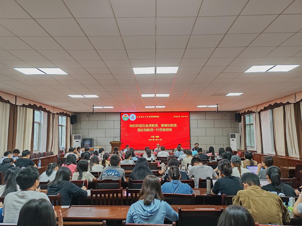 9月21日上午,经管学院主办的以中国农业发展、土地制度改革实践及日本经验为主题的论坛在经世楼207成功举办,日本京都大学沈金虎教授、中国人民大学曾寅初教授、江西财经大学周应恒教授、江西省农业农村厅科教处范利主任莅临指导与交流。院长翁贞林教授、副院长廖文梅教授、张征华教授,博士生导师郭锦墉教授参加了论坛,论坛由翁贞林教授和廖文梅教授主持,100余位师生现场参与。