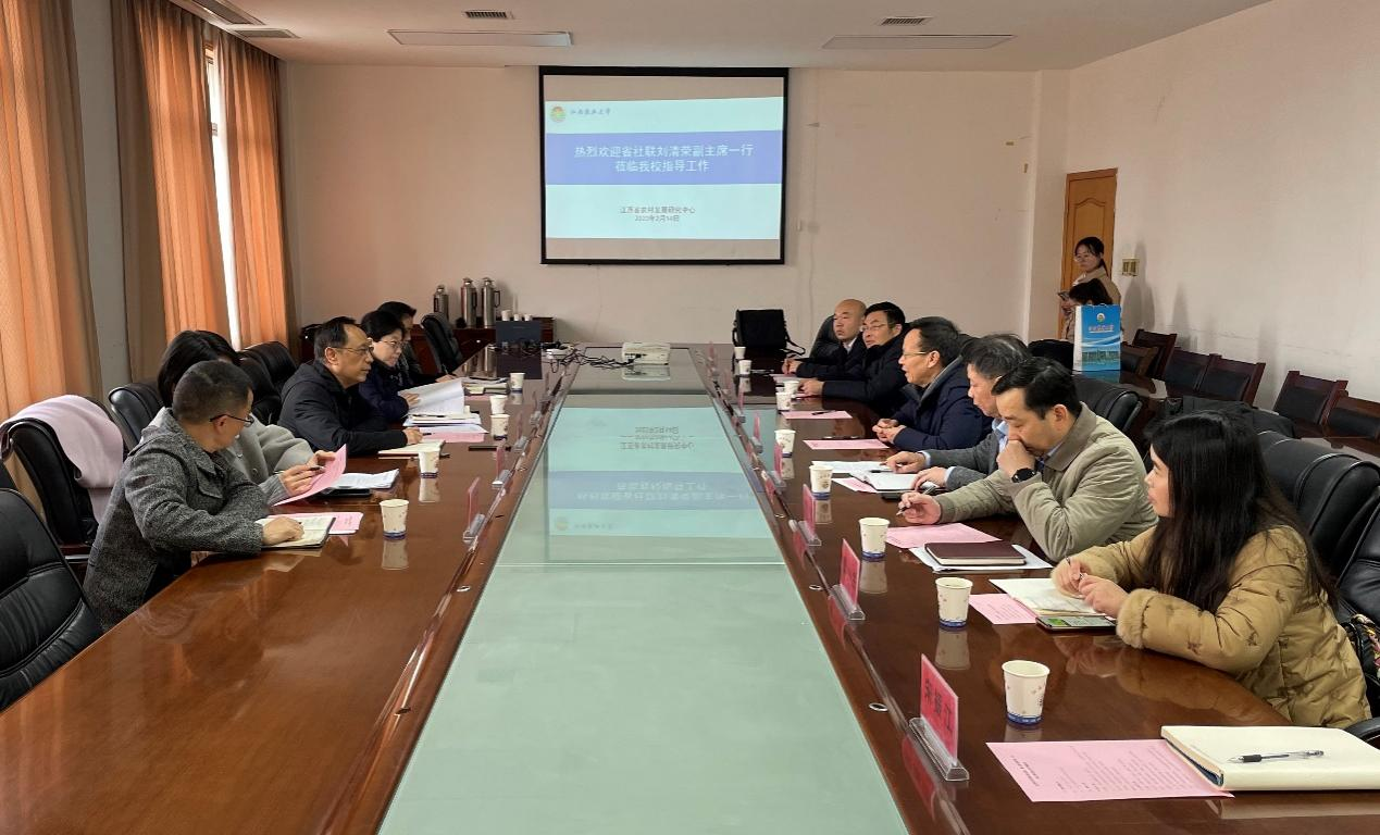 为进一步推动我省哲学社会科学重点研究基地建设工作再上新台阶,2月14日,省社联党组成员、副主席刘清荣带队来我校调研省哲学社会科学重点研究基地“江西省农村发展研究中心”建设工作情况,听取研究基地建设意见,指导研究基地发展。副校长黄英金主持座谈会,学校科技处、江西省农村发展研究中心、经济管理学院负责同志和基地专家代表等参加座谈。