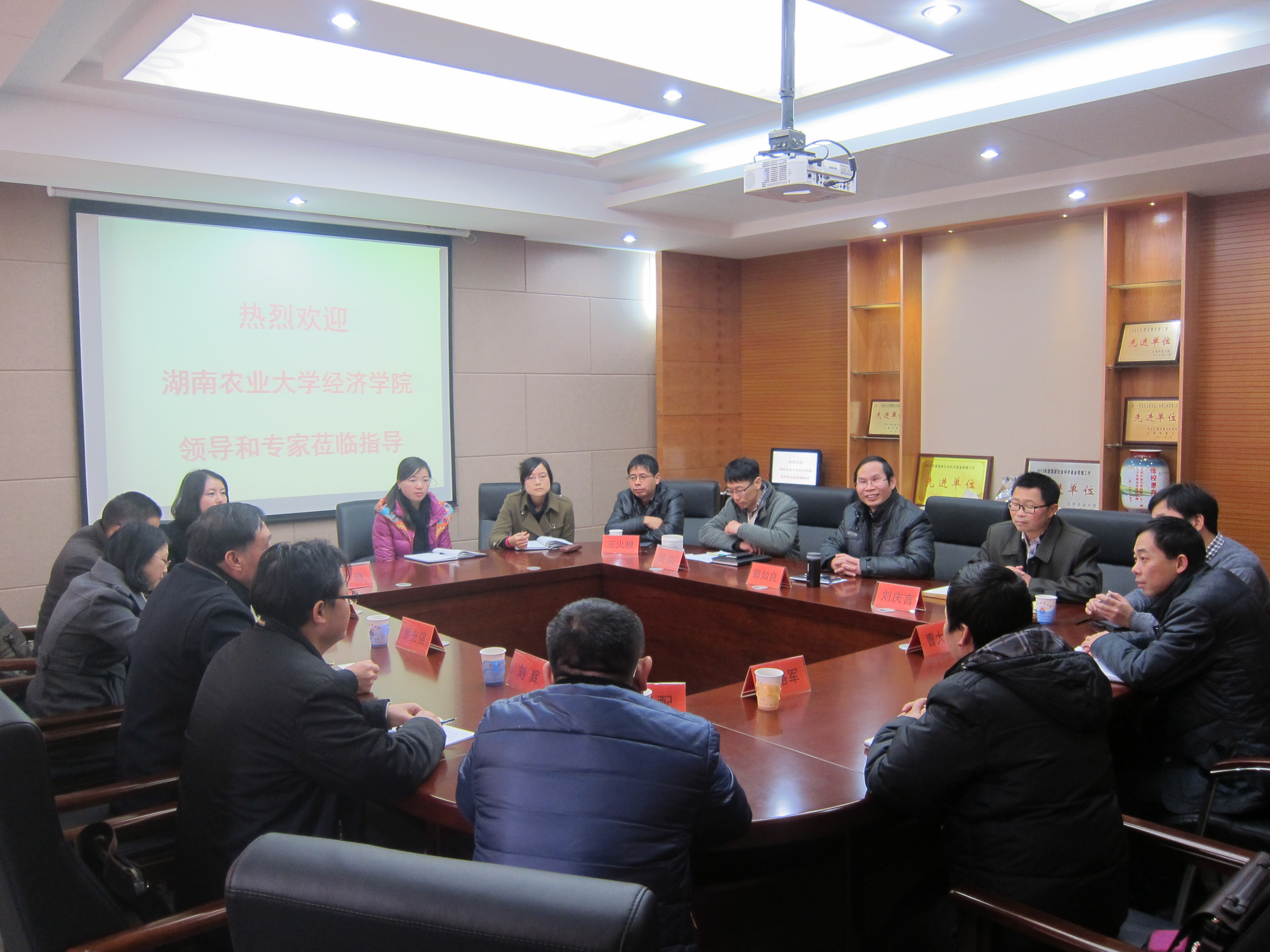 2014年12月11日,湖南农业大学经济学院副院长罗光强教授一行7人来我院交流考察。我院党委书记郭如良、党委副书记刘庆言、副院长胡凯以及相关教研室主任参加了座谈会。