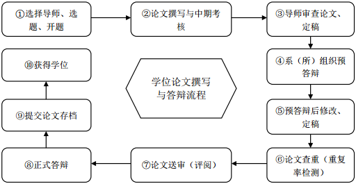 5. 预答辩后修改、定稿:学生针对预答辩中存在的问题进行修改,进一步完善学位论文。定稿环节学生应认真审视论文题目及文题是否相符,核实数据,理清层次,修饰语言和规范格式。预答辩和正式答辩的间隔时间一般为一周到三个月。